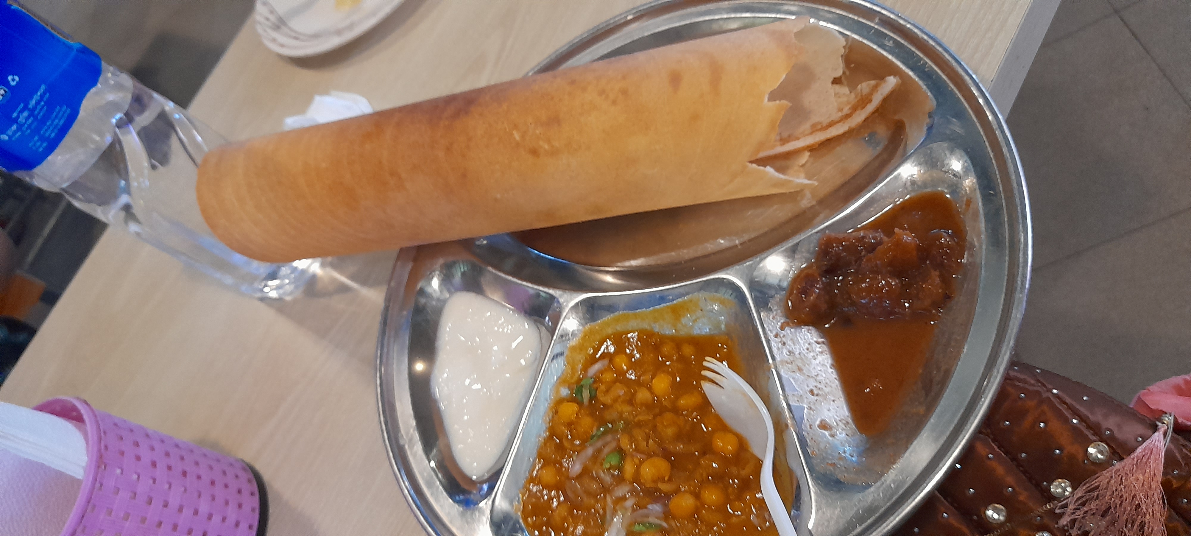 Masala Dosa: A crispy dosa with a filling of spiced potatoes, onions, and sometimes other vegetables.