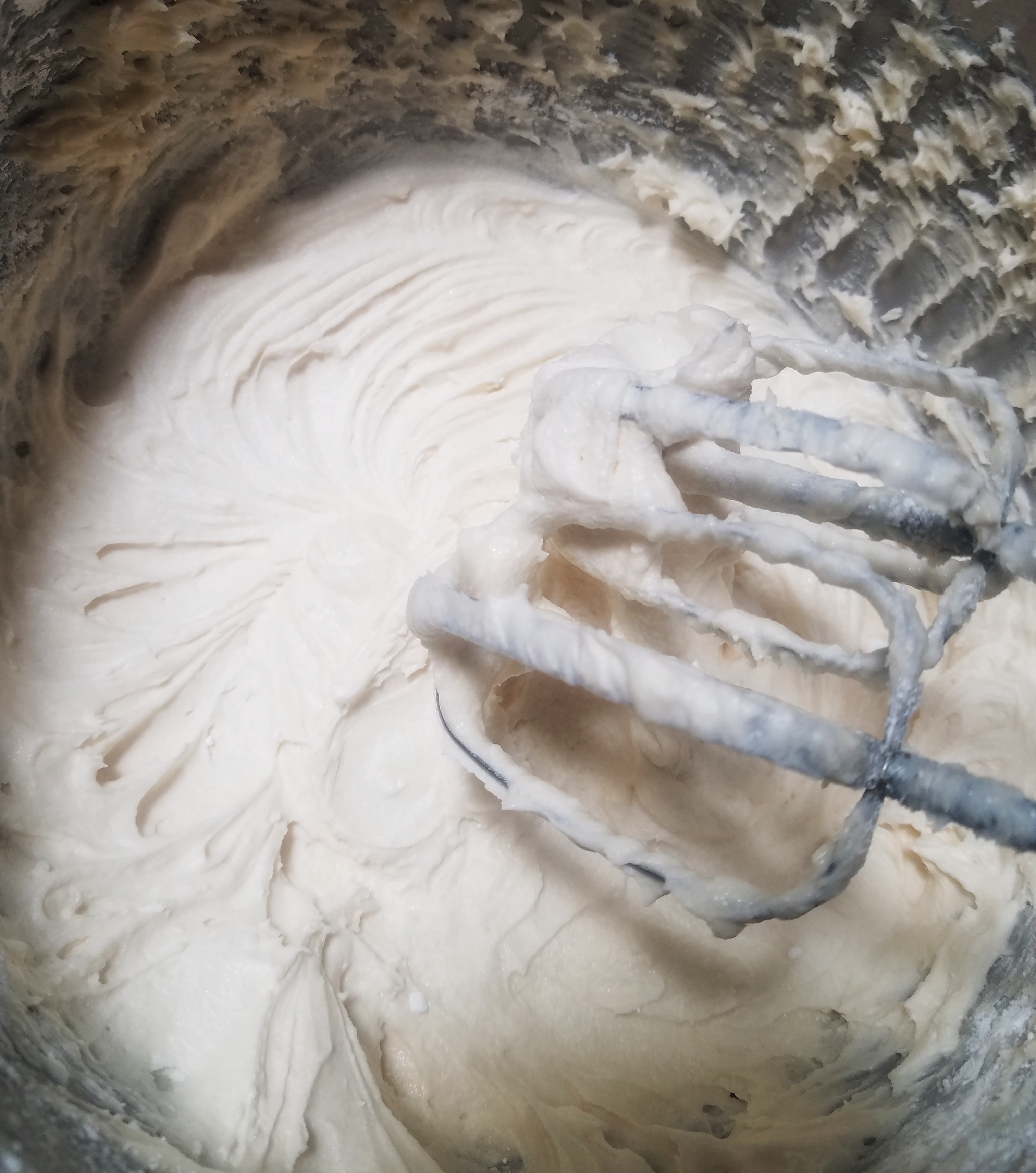 - Add heavy cream and continue to beat.