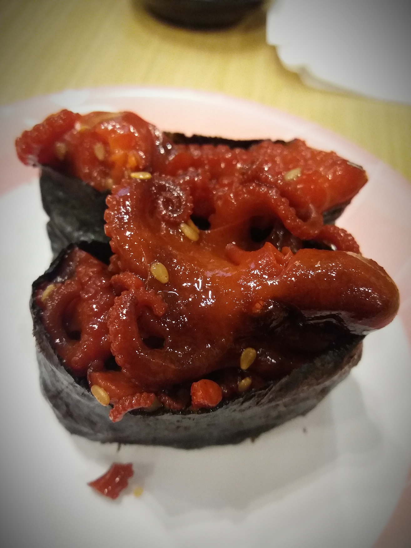 Ini ada baby octopus dengan bumbu barbeque gitu di atasnya.