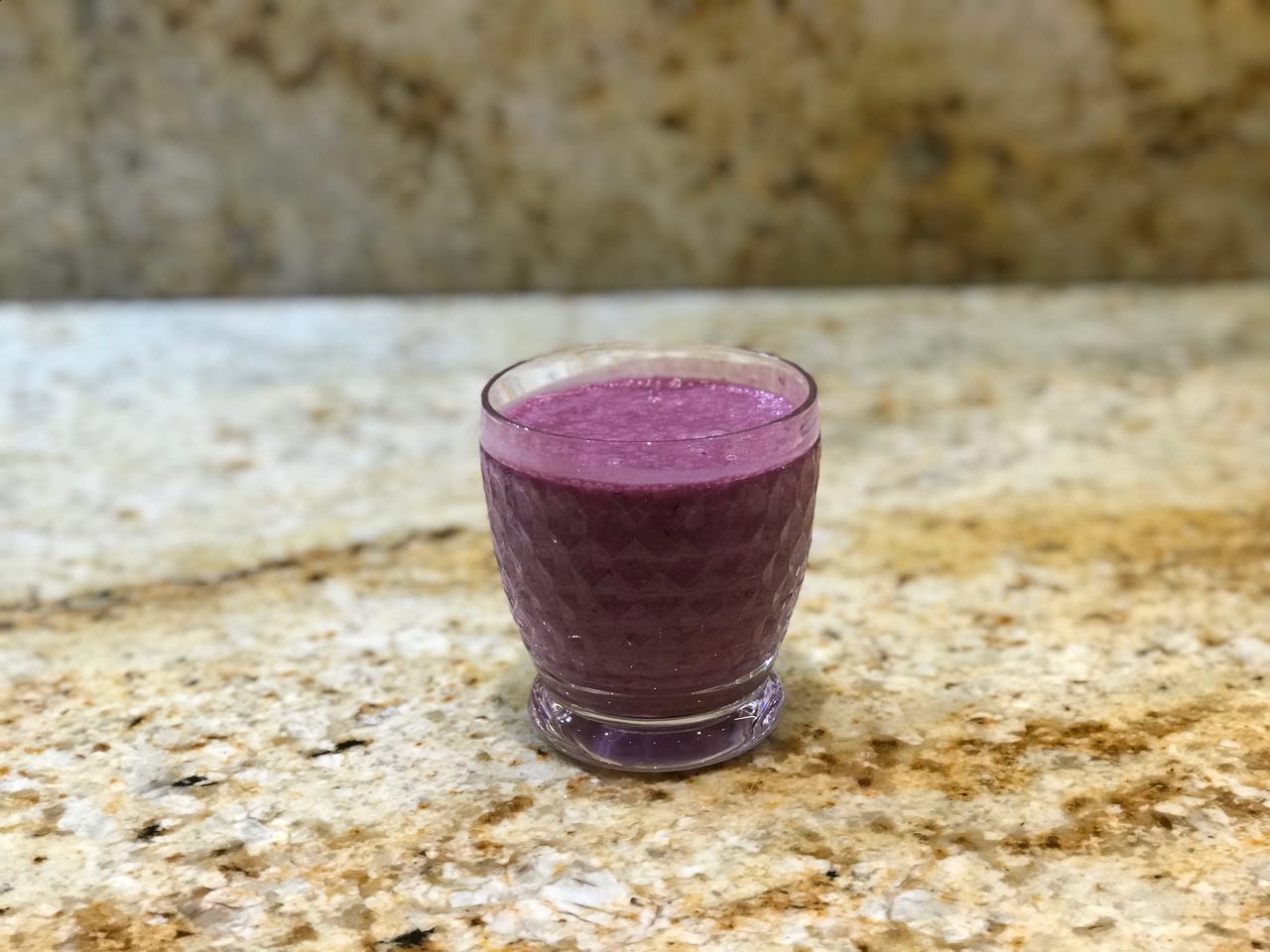 Place all the ingredients into a blender and mix thoroughly. Enjoy! :)