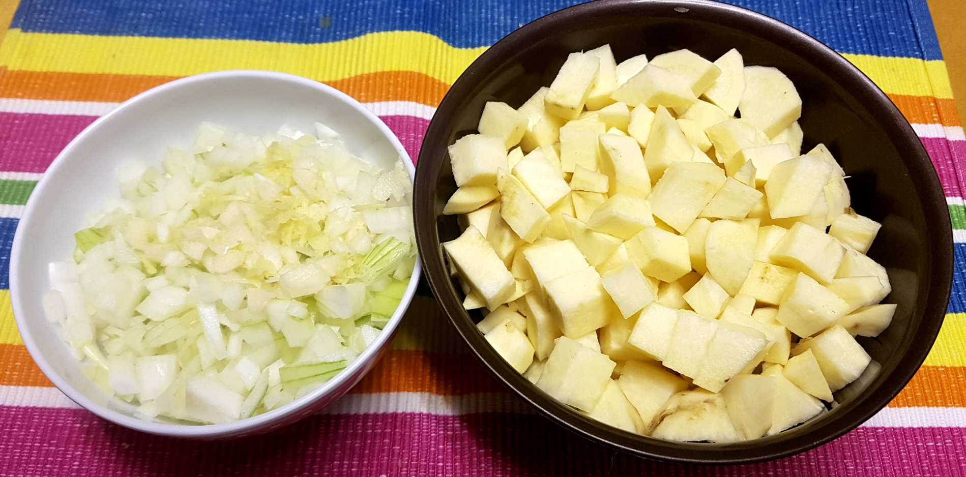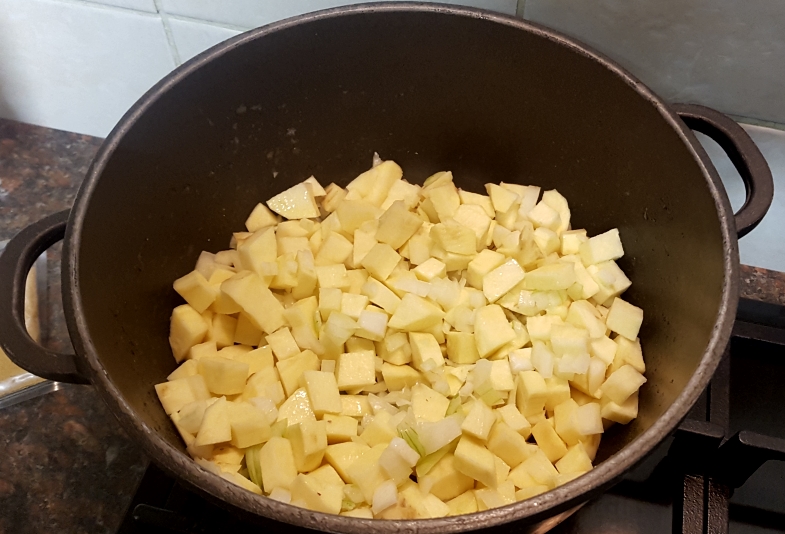 Hint Number 1: The description of the contents in the first pic is the desired state of the vegetables before commencing with the cooking, as the recipe itself does not specify peel, chop, slice etc.