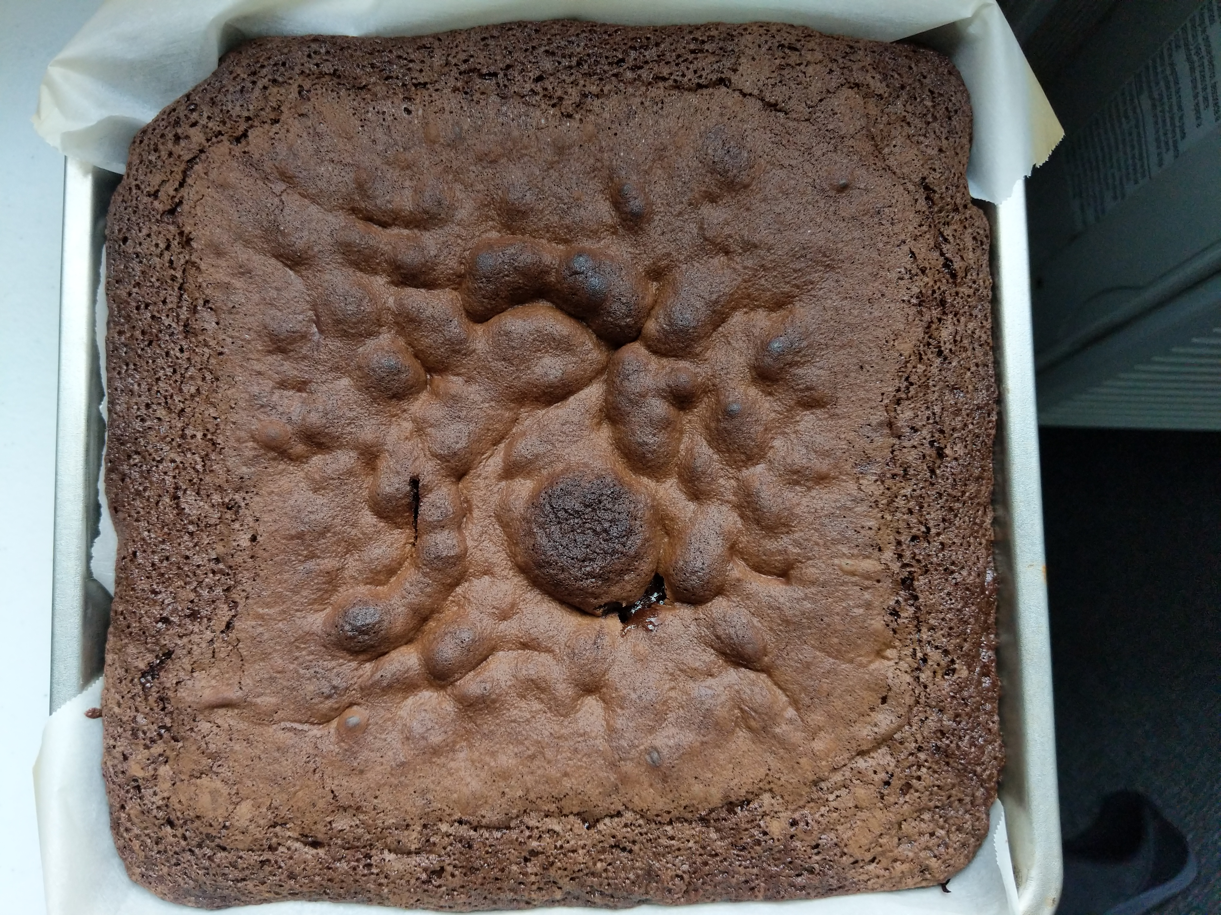 - After is cooked let it sit for 15 min on a ventilated area and then cut into small squares then sprinkle some icing sugar on top.