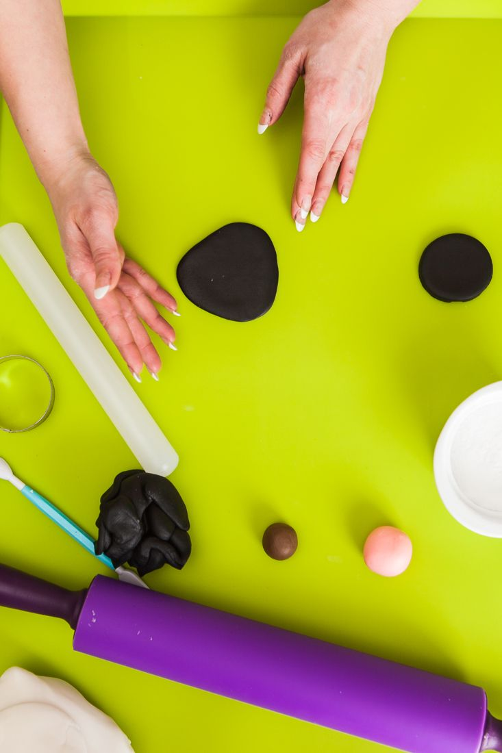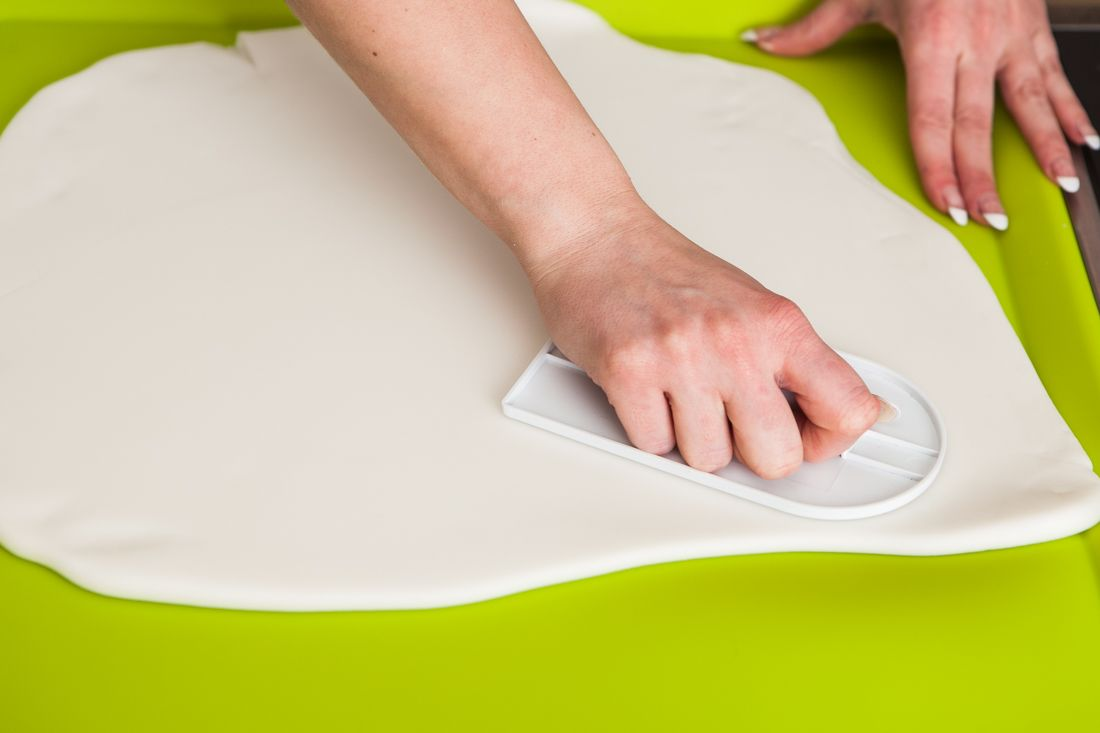 9 ) Prepare the silicone roller a start making the coating layer. You need to make size of the panda in width 4 mm.