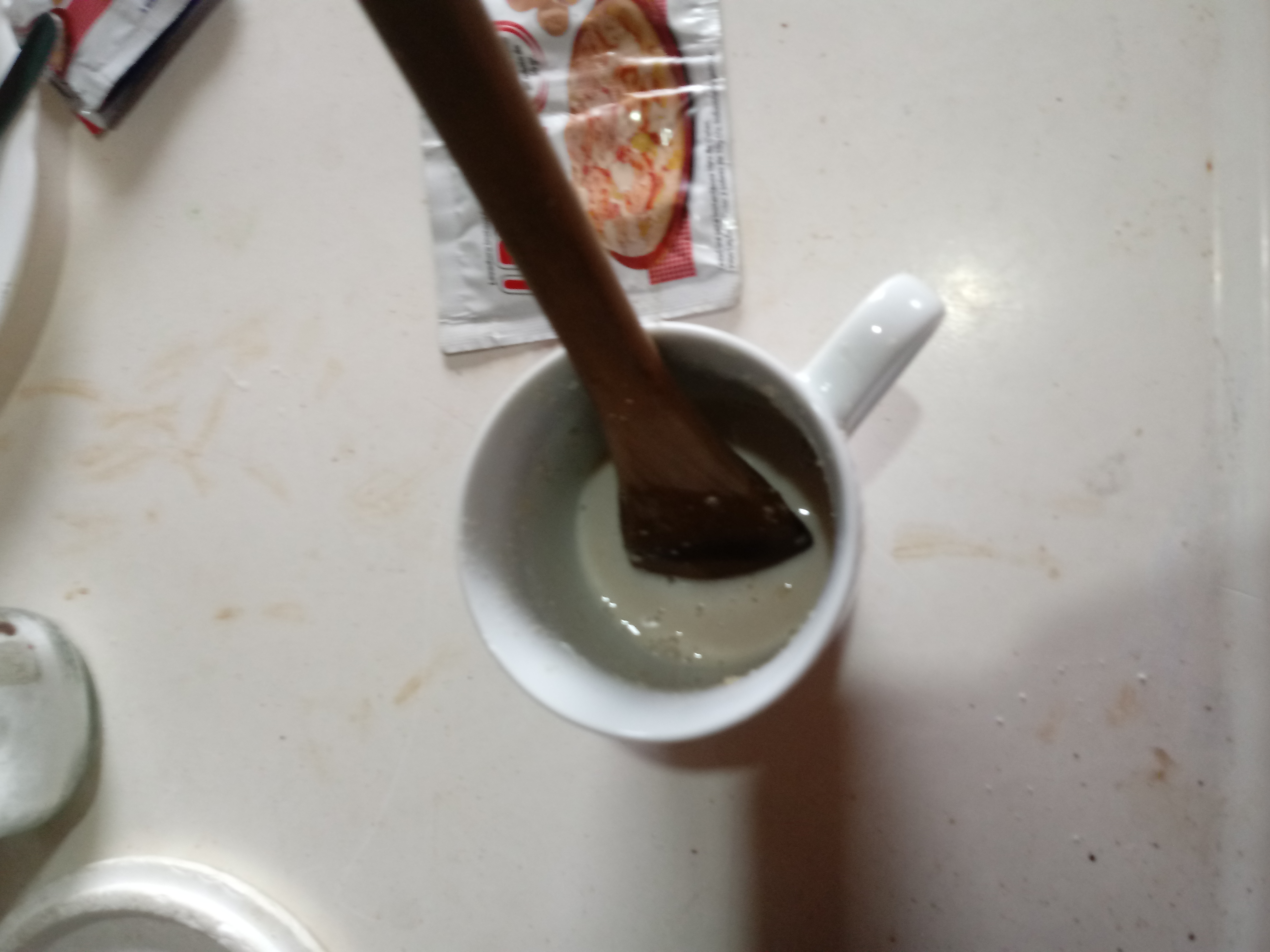 1.- Agregar levadura en agua tibia y agregar el azúcar. Ahora, revolverla con una cuchara de madera hasta que la levadura se disuelva por completo.