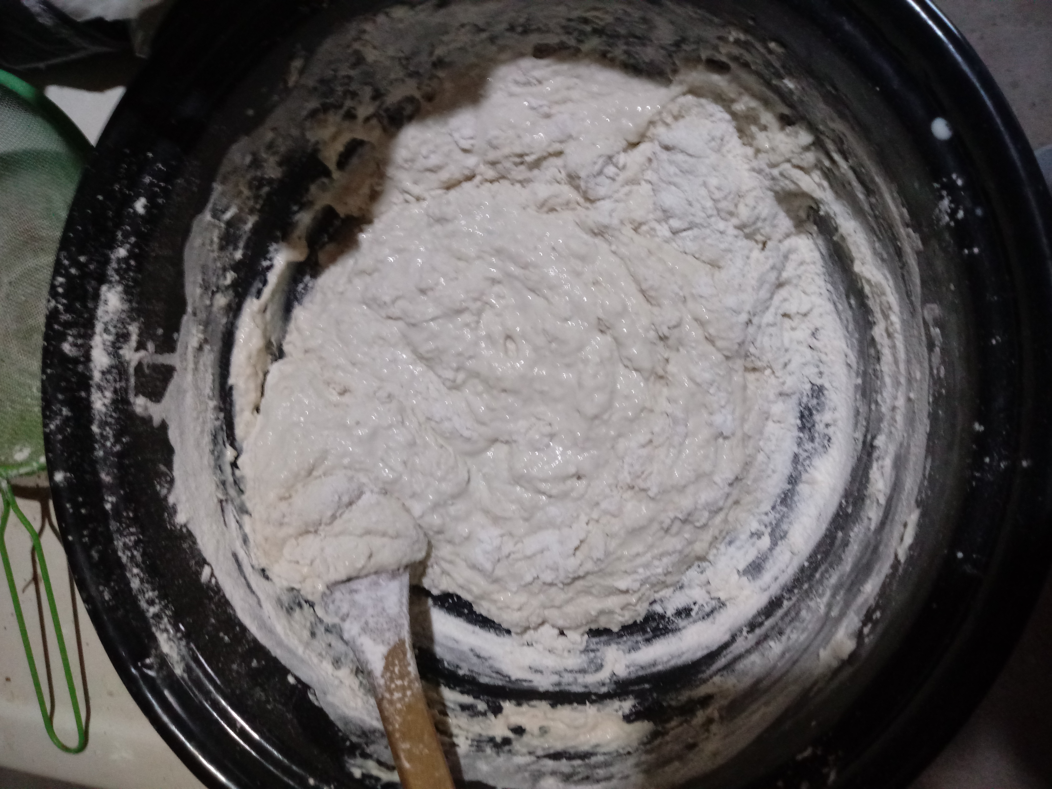 3.- Ve incorporando la harina y mezclando. La masa tiene que quedar muy espesa. Añade la sal en este punto.