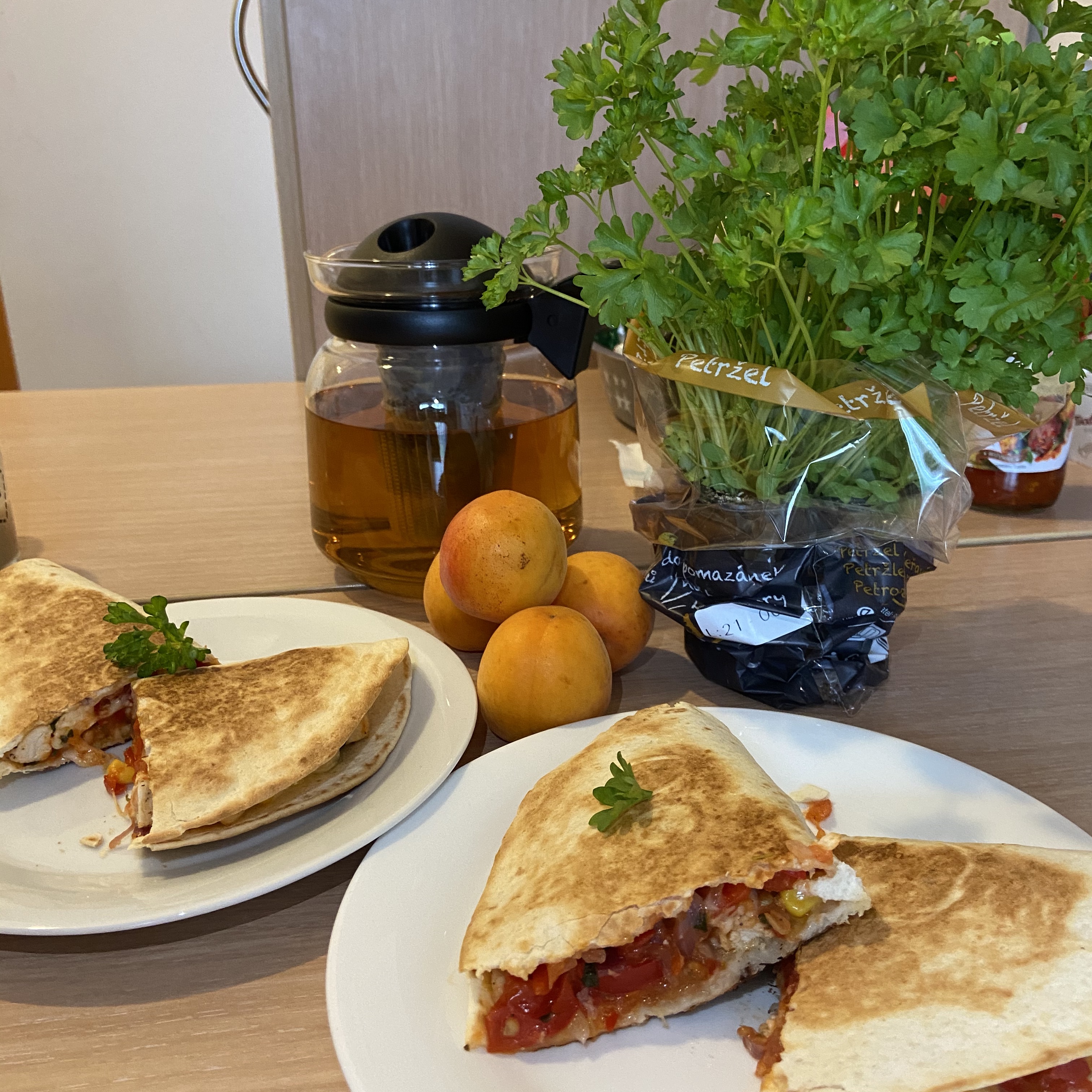Today I will write you a simple and tasty recipe. Yes, this is quesadilla. Take: pita bread, chicken, pepper, tomato, red onion, corn, cheese, sweet and sour sauce. Fry everything (except corn and cheese). We put cheese, corn on pita bread, then what we fried, pour sauce and fry pita bread. Done! After you try, you will cook every day, for sure. ❤️