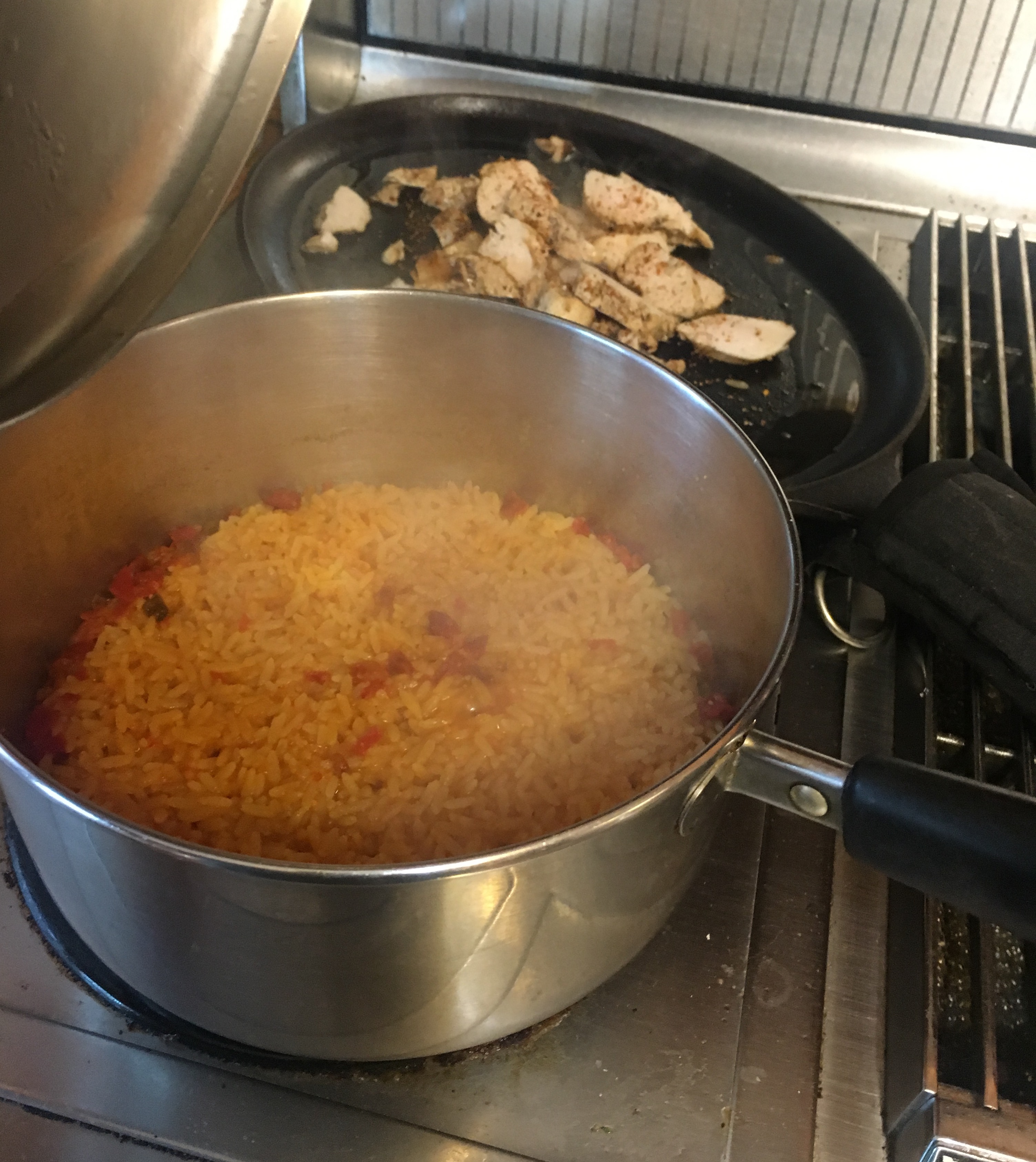 Spanish Rice, I use Near East, and follow the package directions