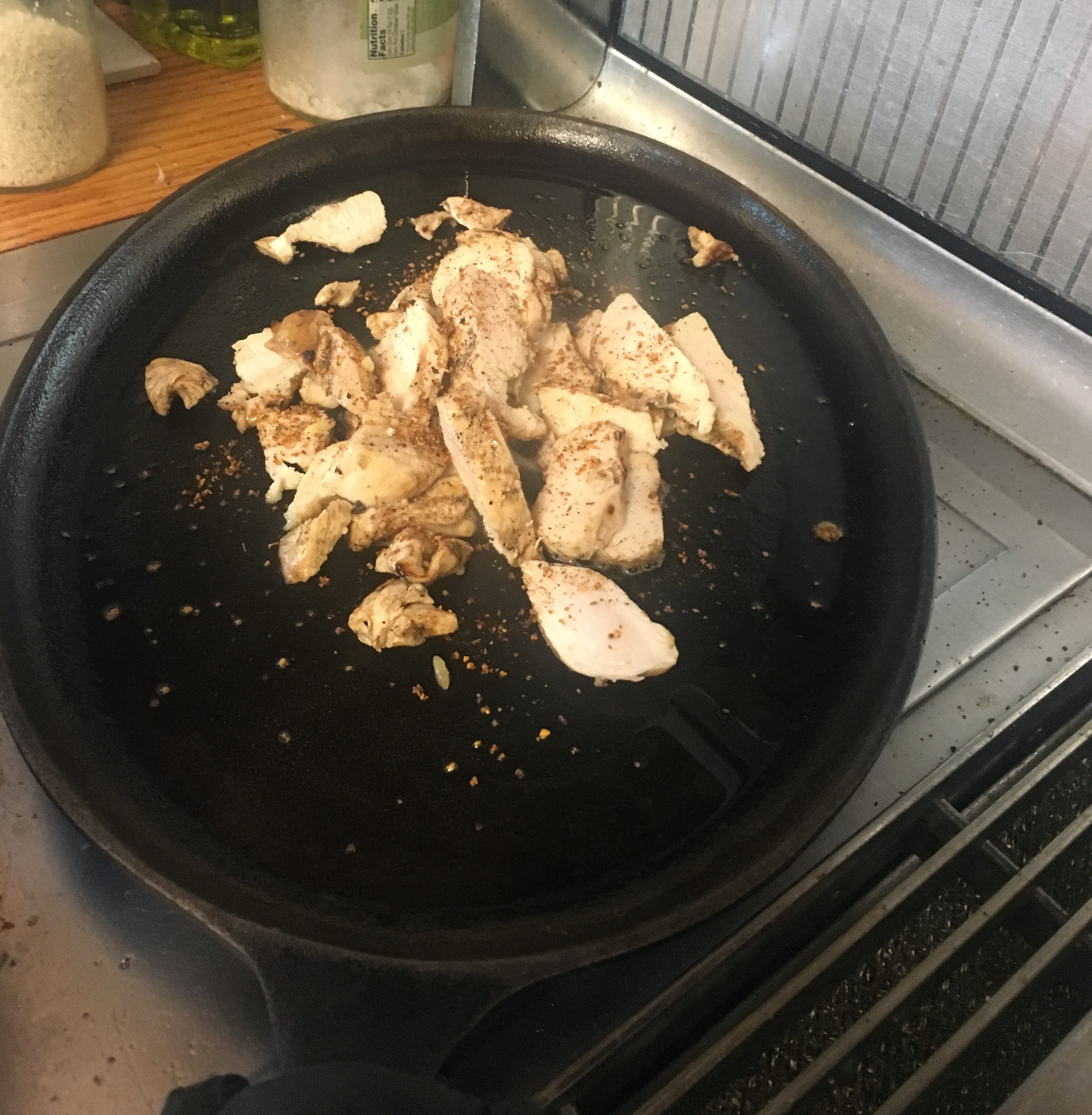 While the chicken is reheating, add juice of half a lime, until heated thoroughly. When the chicken is done, do the steak exact same way, adding Fajita spice and lime as needed! DO not over cook... all you want is to reheat the meats.