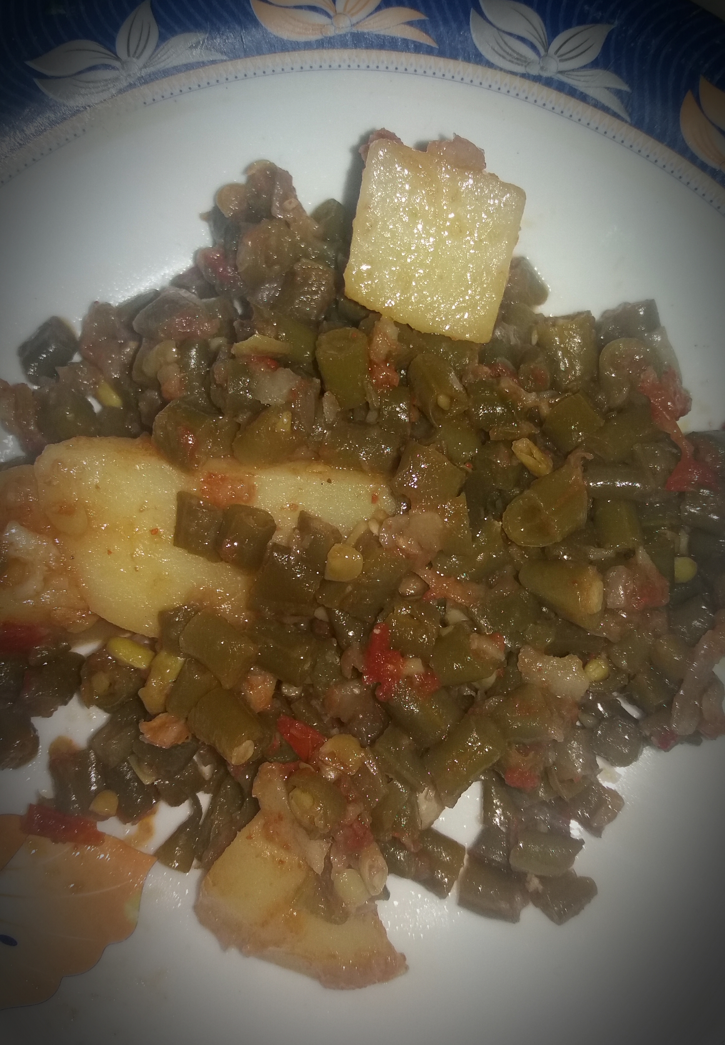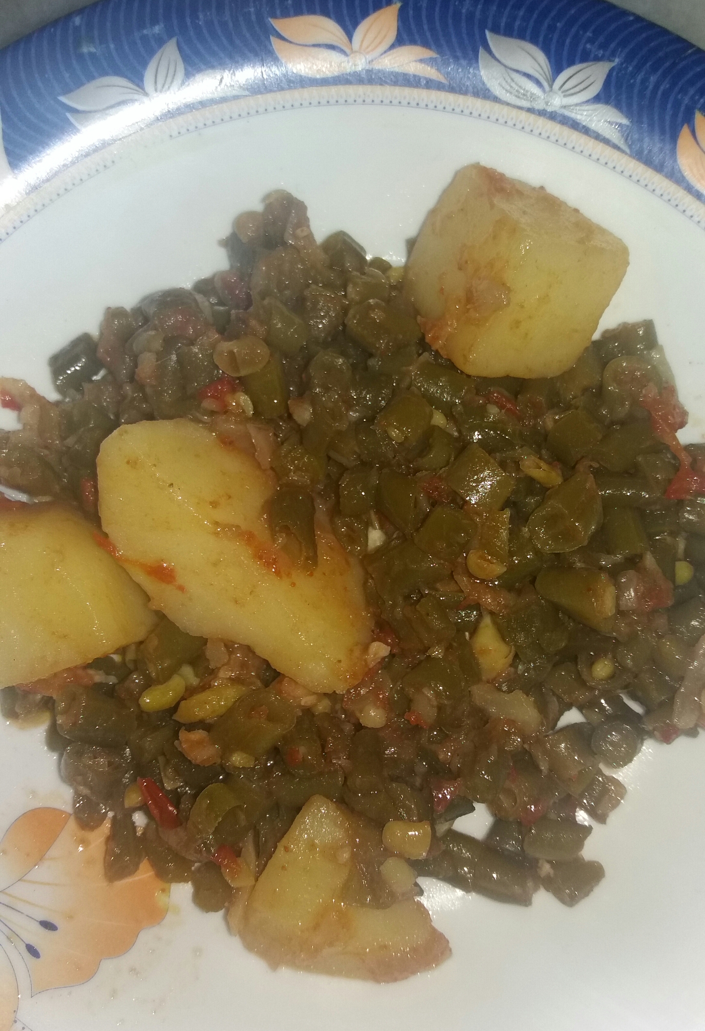 I made fresh beans and with potato today ,in pakistan it is made very spicey , I also like spicy food but I have started to take less spicy because it is unhealthy . Now a days I only put some green chilles so it tastes natural and also the color is enhanced with red tomatoes and other spices . Today's dinner was very tasty ,when I served dinner to my papa he said that he liked the food .I am sharing the pictures of today's dinner hope you all will like .