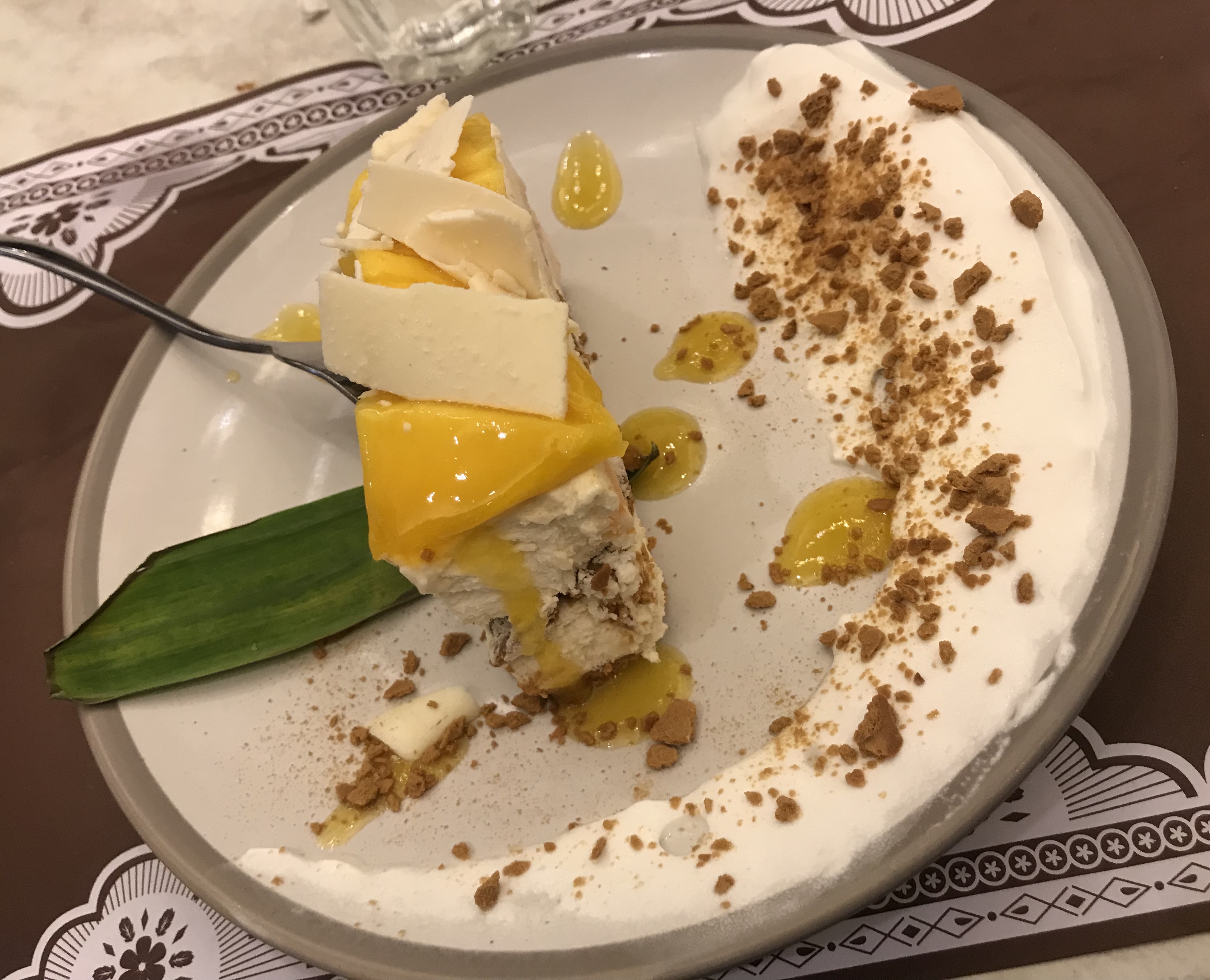 Olimpia is a dessert served at Crisostomo’s Filipino Restaurant. After the sumptuous lunch consisting of Crab Rice, Roasted Suckling Pig, Baked Mussels, Sinigang, Kare-Kare, Seafood Paella, Spicy Chicken and more, I chose Olimpia as my dessert because I love mangoes and cream.