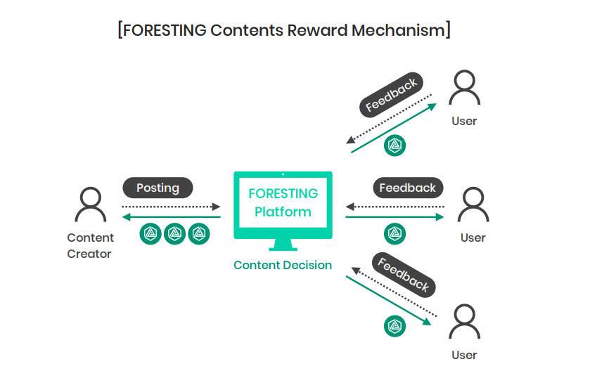FORESTING is designed to build a network by distributing income though reasonable content generation and on the assessment of the users’ content. It supports all types of content, whether it is text, images, videos, audio, or live broadcasting, and provides a social network based on a content-oriented rewarding service.