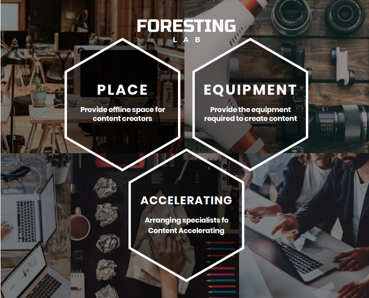 A lab to support the Foresting community and content creators : ‘FORESTING Lab’ supports communities and marketing activities besides the platform to activate the FORESTING Network, especially the content creators who are the owners of the FORESTING Network.