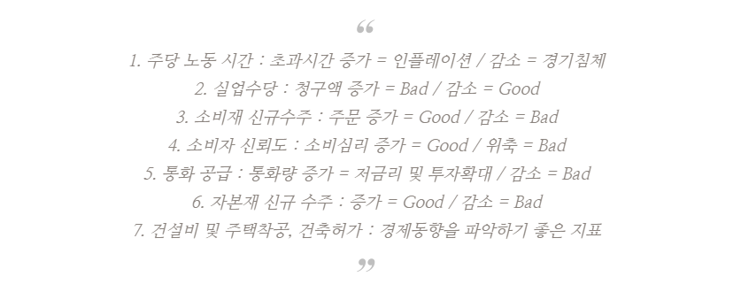 일전에 경제적 선행지표들을 내 나름대로 정리한 적이 있다.