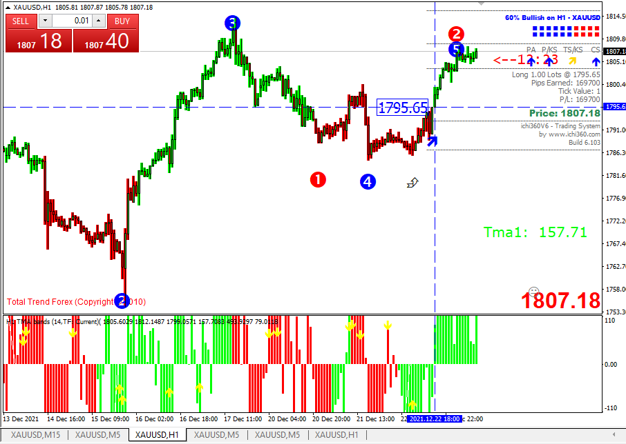 XAUUSD hourly chart , short trend starting