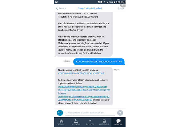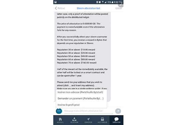 Steem reputation au dessus de 50: vous aurez 40 dollars en GBYTE