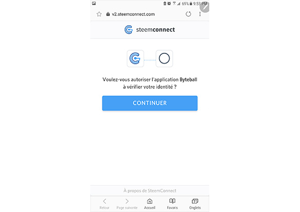 7 Un lien de vérification vers steem connecte apparaitra, vous cliquez dessus.