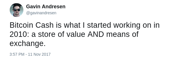 Bitcoin Cash est ce sur quoi j'ai commencé à travailler en 2010 : une réserve de valeur ET un moyen d'échange.