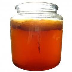 Le thé kombucha est réalisé à partir de la fermentation de thé noir ou de thé vert et de sucre par une symbiose de levures et de bactéries qui prend la forme d'un disque se formant au-dessus de la culture lors de la fermentation.