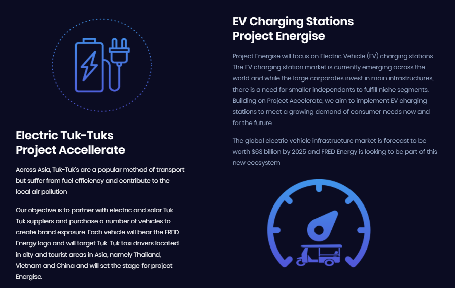 Рынок альтернативной энергии развивается все больше, и внедряют его во все больше ниш. Первоначально имеющиеся продукты нашего партнера будут расширяться и ближайшее время включат в себя электромобиль и все для него, а также войдут бытовые зарядные устройства, солнечные системы, ветряные турбины для потребителя и другие сопутствующие гаджеты с вариантами оплаты, включая токены FRED Energy и другую криптовалюту в дополнение к традиционным методам.