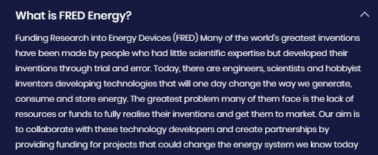 Исследования финансирования энергетических устройств (FRED), многие из крупнейших мировых открытий сделаны людьми с небольшим научным опытом, но их выводы сделаны методом проб и ошибок. Сегодня есть инженеры, ученые и просто энтузиасты разрабатывающие технологии, которые уже завтра изменят способ производства, потребления и хранения энергии.