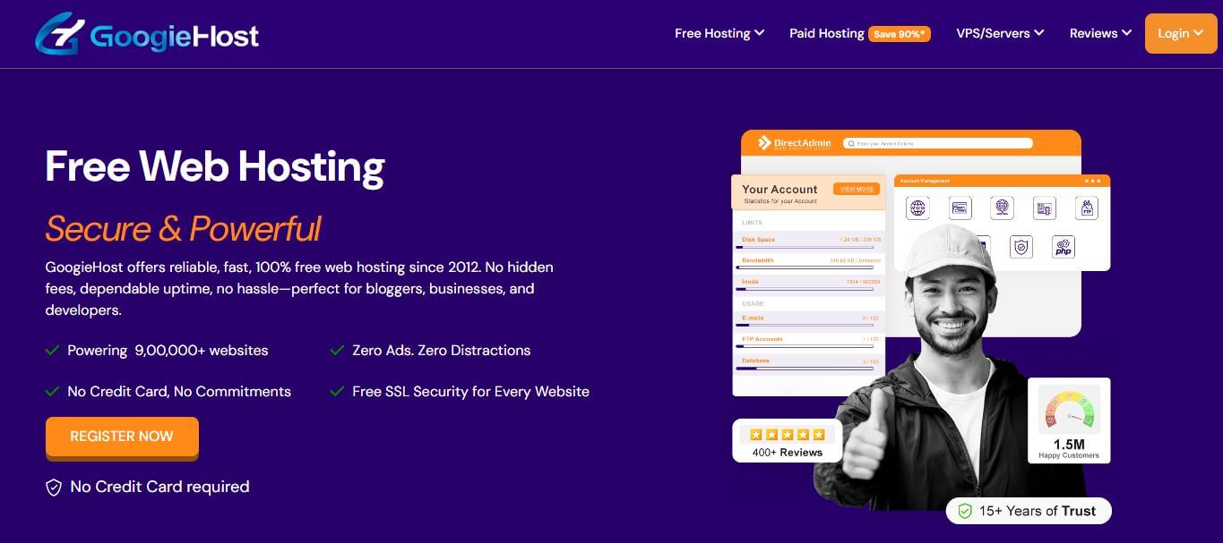 Here I’m using GoogieHost free hosting to explain the process because it's free and provides all similar benefits like a paid provider.