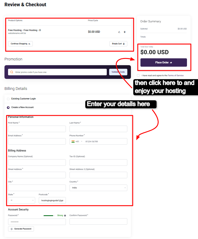 Step 4: Click continue and here you will get a interface asking for basic informations fill and press checkout .
