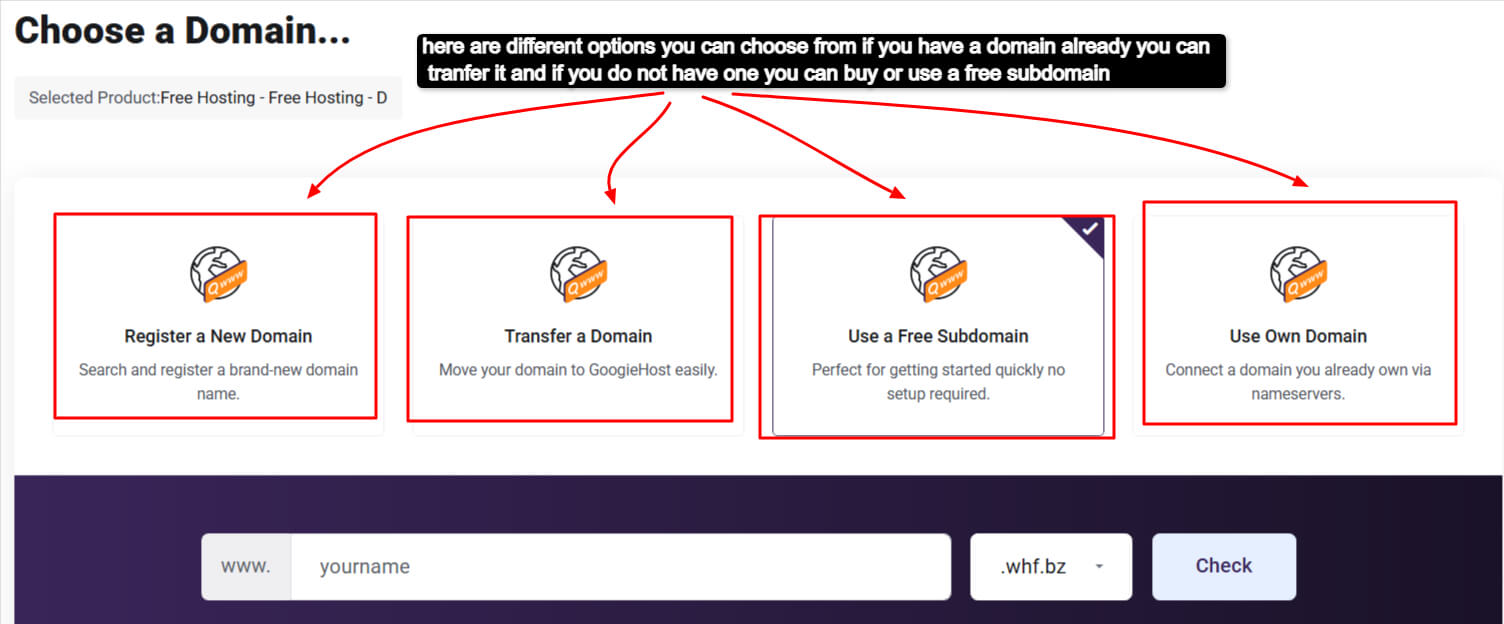Step 2: Register a domain name if you don’t already have one, or you can use a free subdomain