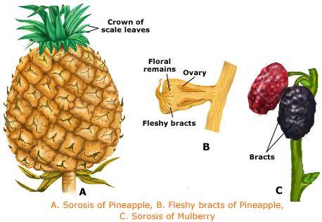 - Sorosis: This fruit is formed from female spike, e.g mulberry and pineapple.
