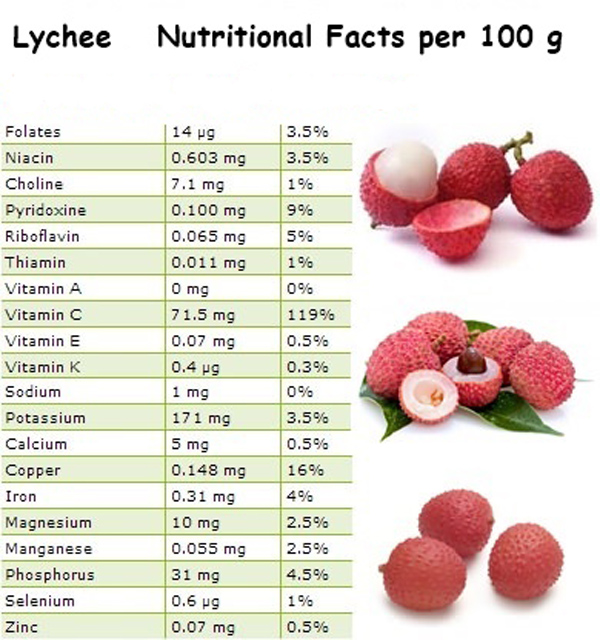 In terms of nutritional quality,it can be said that there is plenty of calcium and vitamin 'C'. calcium is needed to keep bones, teeth, hair, skin, nails well.It is estimated that 100 grams of litchi are 13.6 grams of calories, calories 61, calcium 10 mg, iron 0.7 mg and vitamin C 31 mg.