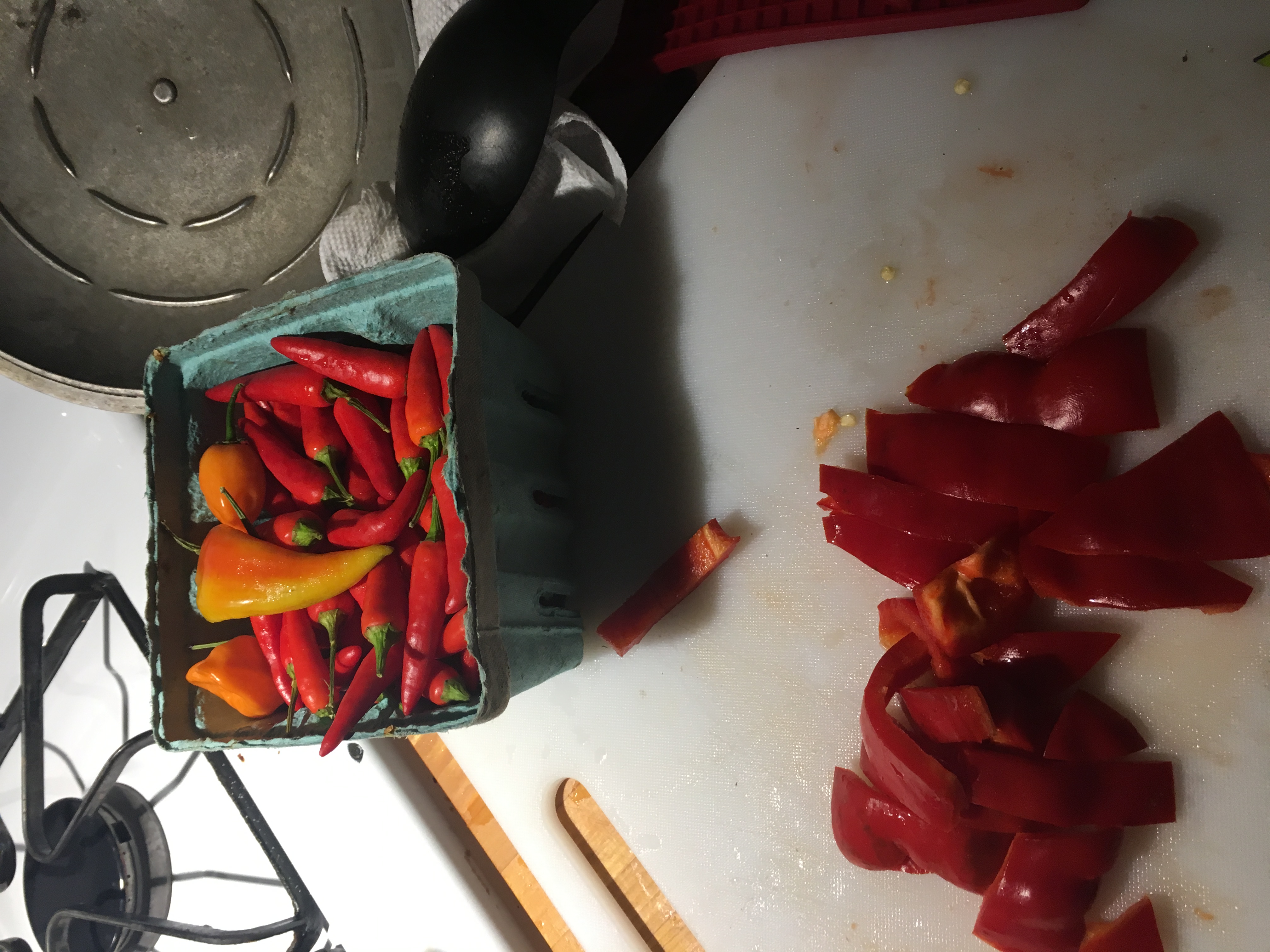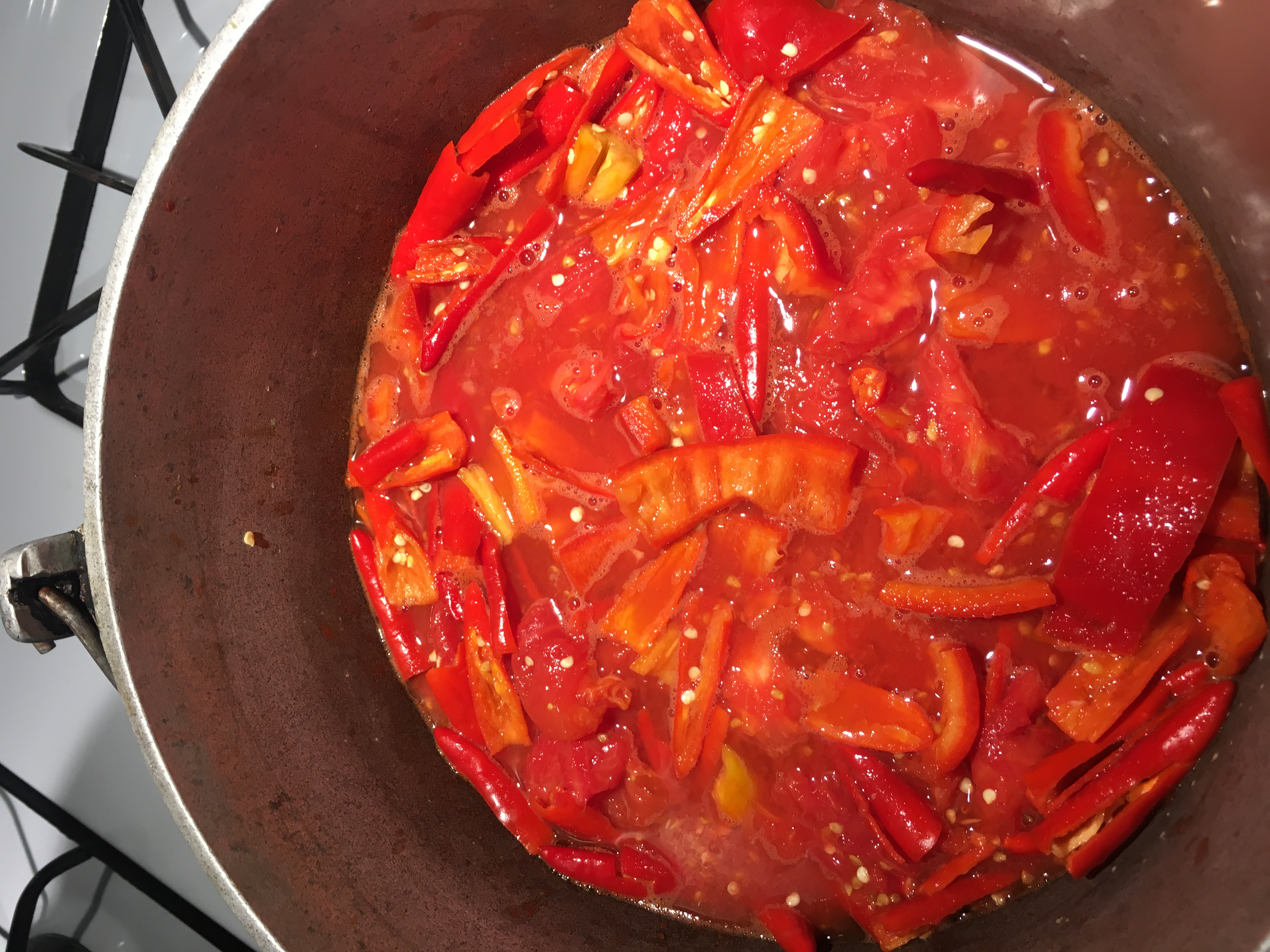then simmered together for 20 minutes. Added vinegar and peacches towards end