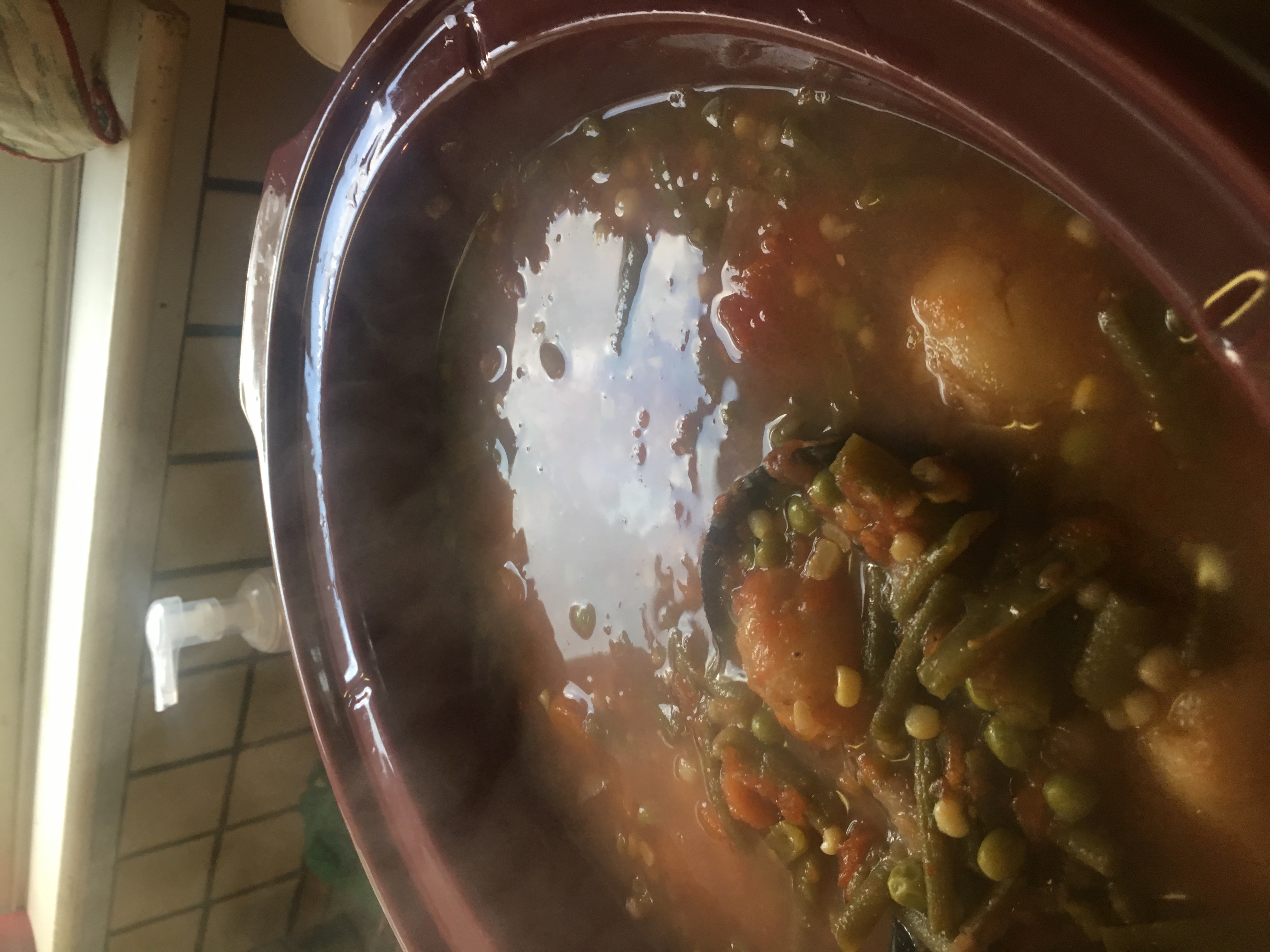 ~ soup was my mother’s creation, veg broth steweded tomatoes and all the veggies from last year.