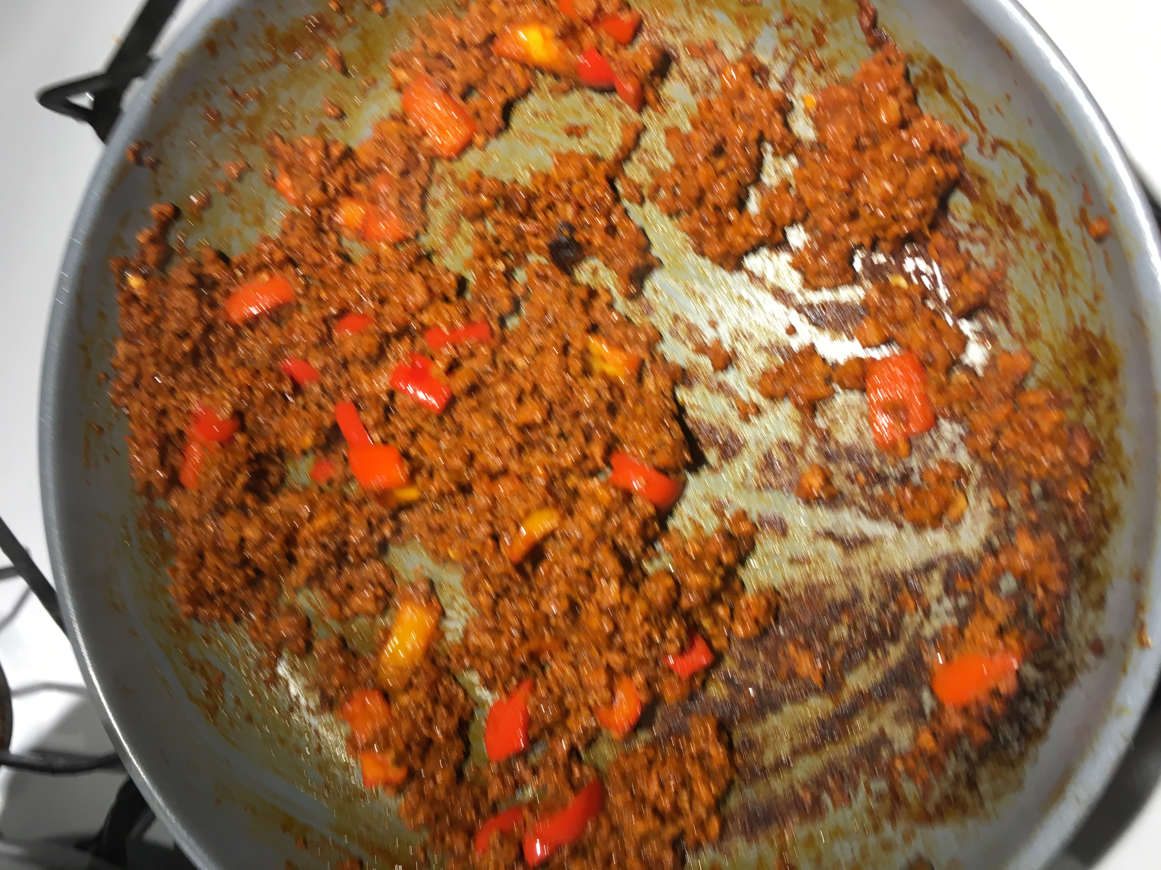 After sauté the beans and sauce and peppers I thru in spinach and spun til sauce absorbed. Then tossed into s bun.