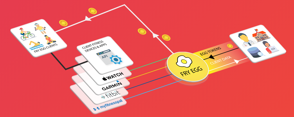 Fry Egg’s API allows anyone with EGG tokens to access millions of records of client data from all around the world. Clients get paid EGG tokens as a reward for providing their data to the platform, and this data can only be accessed through the API by using EGG tokens. All records are stripped of any location data, names, and any other sensitive information that could allow the client to be identified. All client data is stored on an immutable ledger, allowing for a transparent, incorruptible record of clients health journeys. Clients’ height, weight, medications, mood, nutrition information, daily routine, workout stats, and more will all be anonymized and made available in exchange for EGG tokens. API fees are structured at a fixed price in EGG tokens for a bundled amount of search queries.