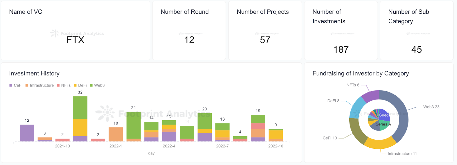 FTX has invested more than 57 projects in 187 investments. You can check the specific projects in the dashboard below.