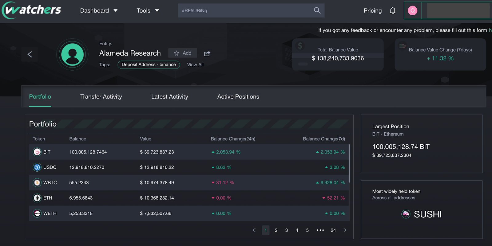 FTX’s major tokens balance dropped significantly.