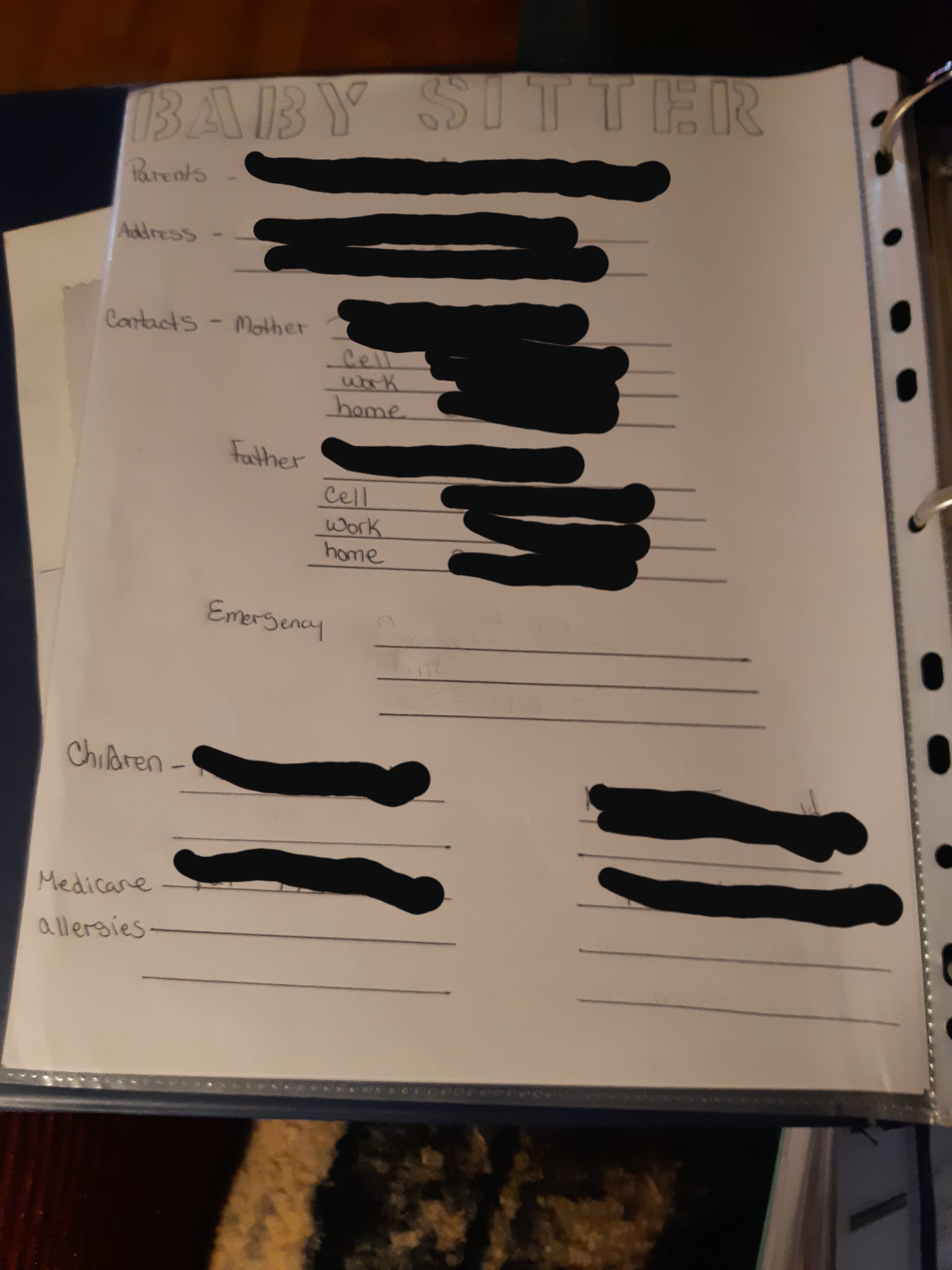 If you have children this baby sitter section is amazing as it provides all the information that they should need in case of an emergency.