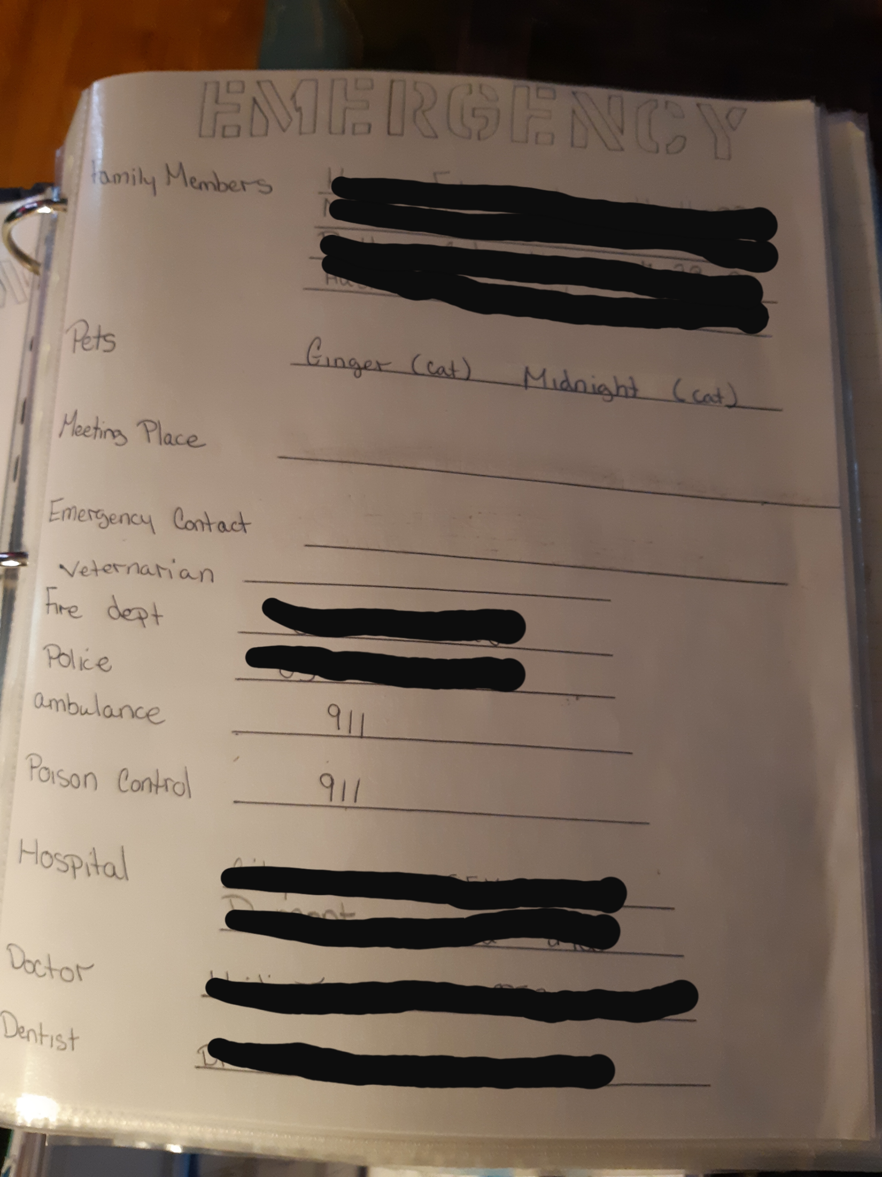 I blacked out our personal information but you can copy and fill yours in instead incase the worse case scenario does happen to your family.