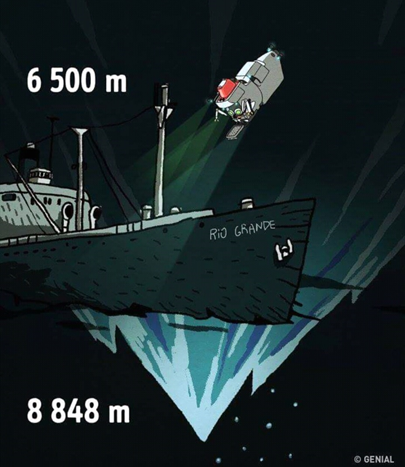 Here is the SS Rio Grande, the ship that sank during the Second World War. It is considered the sunken ship to the greatest depth in the world.
