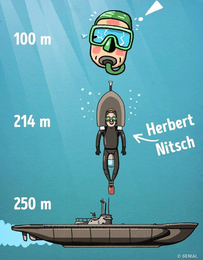 But the danger did not stop the human being named Herbert Nitsch, who set a record by diving 214 meters deep and without diving equipment. His legs and head were tied with heavy objects so that the diving was quite fast.