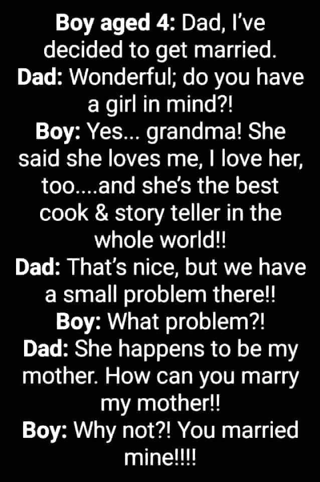 Boy aged 4: Dad I've decided to get married.princemalick (40)in #funny • 6 years ago (edited) #meme #quote #love #life #enjoy #steemit #blog