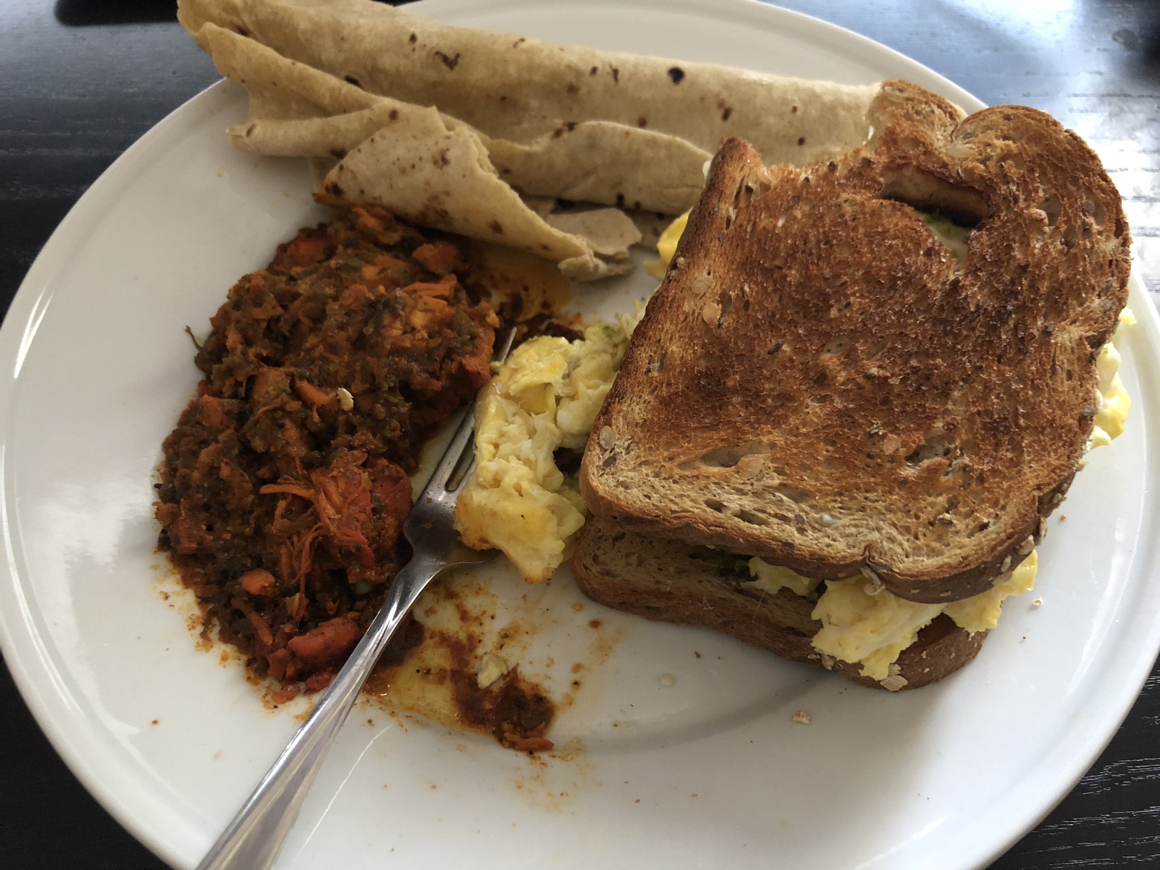 So, I got some indian chicken tikka, roti and then I even made an egg sandwich as my "side" dish!!!