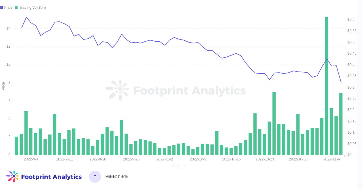 - Total volume in GameFi remained steady from September, except for a brief jump in volume on the 11th.