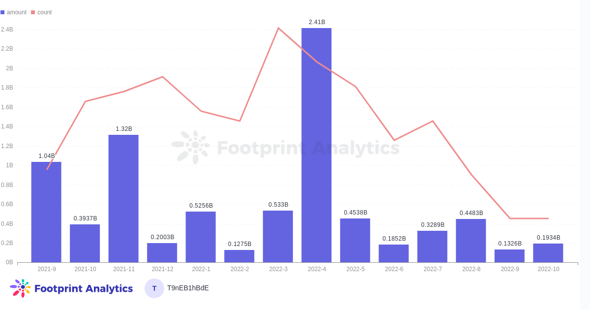 - The amount of funding raised in the GameFi space increased 45% MoM from $0.133B to $0.193B.