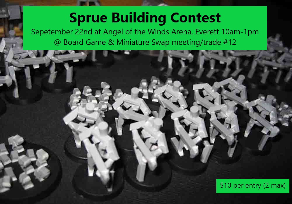 Our next contest is September 22nd And will be a sprue building contest, prize pool is $210 plus 80% of all entry fee's