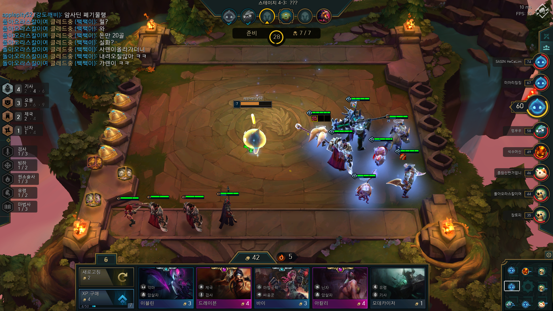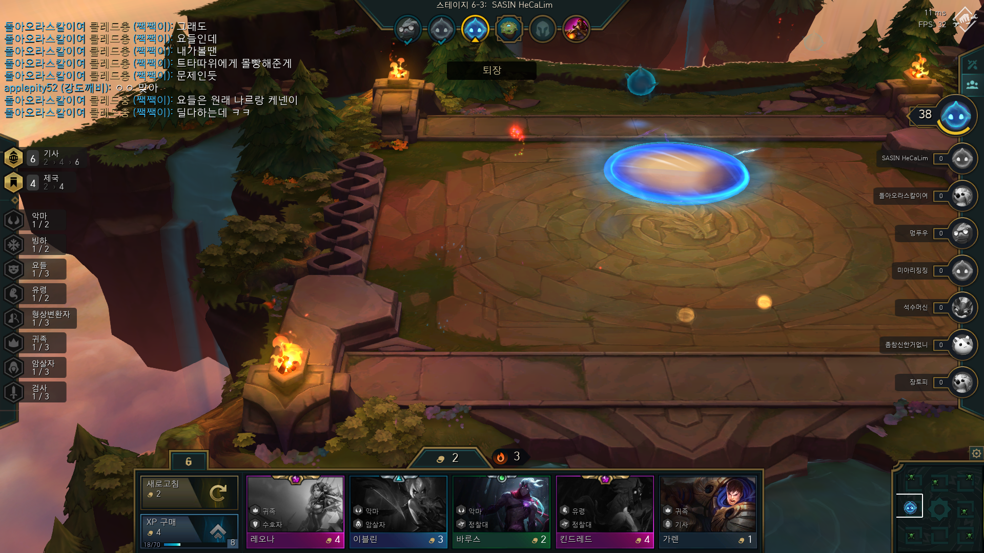 기사 시너지를 바탕으로 요들시너지에 2성 드레이븐을 추가해서 제국까지 완성했어요.