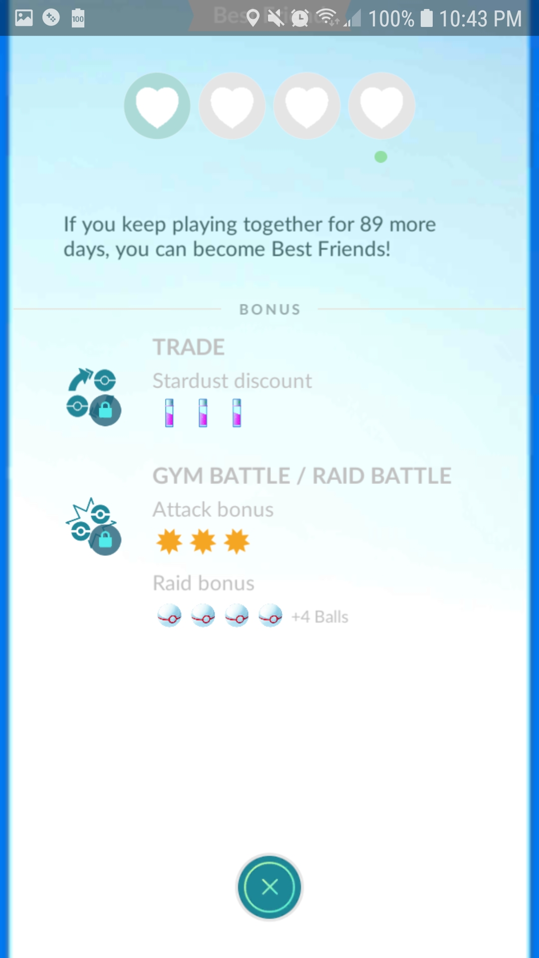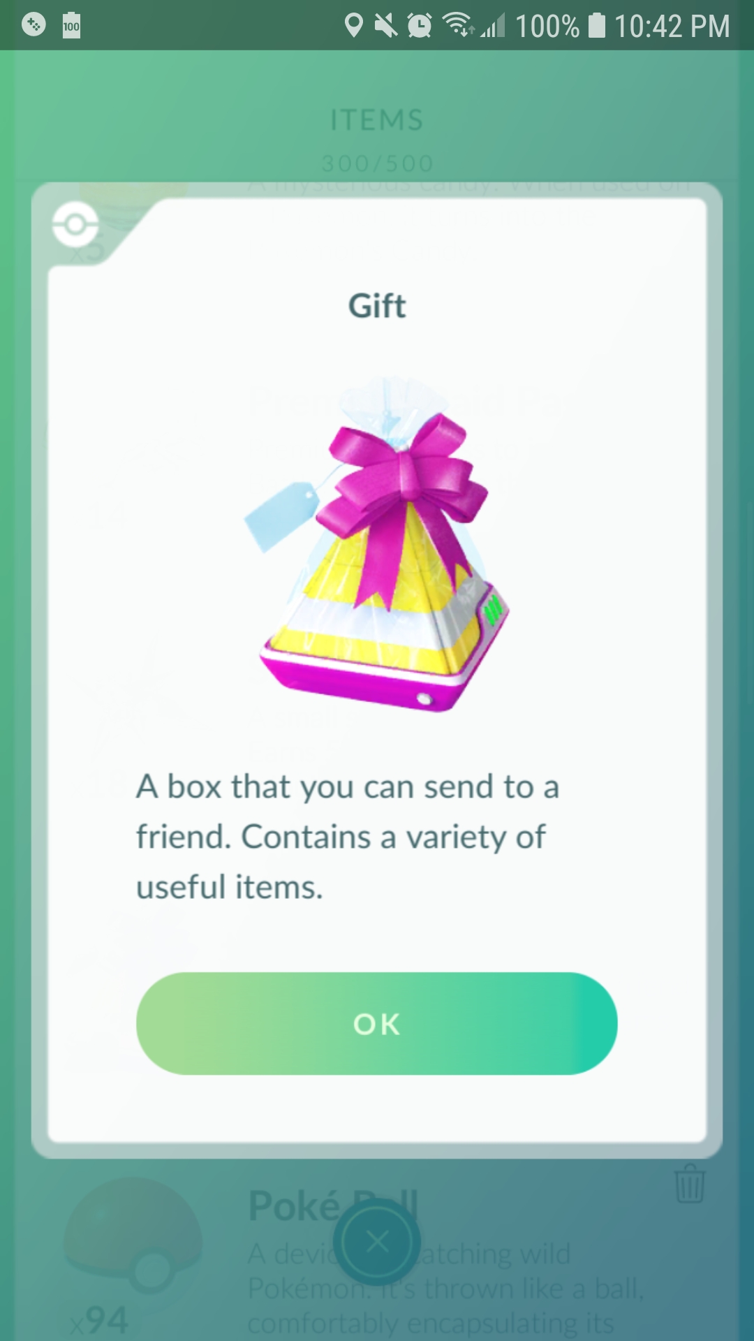 Now before I forget there is also an introduction of gifting as well, the idea behind gifting is to have a way for those who aren't always available to "group" up can still get added bonuses by playing with others/friends! this is great cause the requirement for 90 days of playing with a friend may be hard for most due to jobs, school, life!...the gifting system allows one to "play" with someone without having to go play with them, this way its harder to miss a day...It also increases the chance people who play more frequently to help their less frequent players stay "into the game" I know how grinding for Pokeballs at Pokestops just to have enough to catch Pokemon for a Day can be...boring & disheartening, Heck I'm on my 3rd try playing, I hope to stick around more with the growth of the game & community getting more stable!!