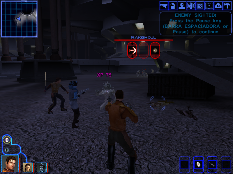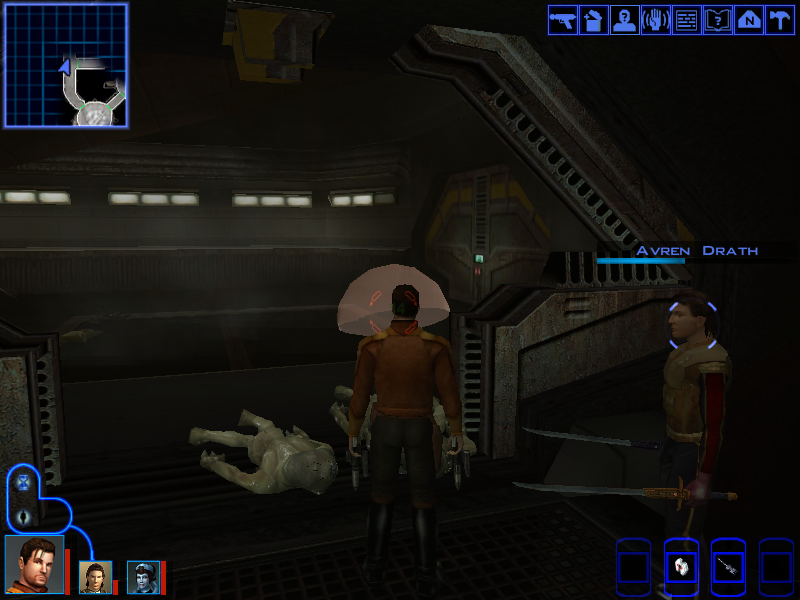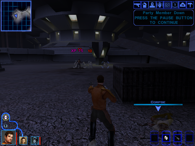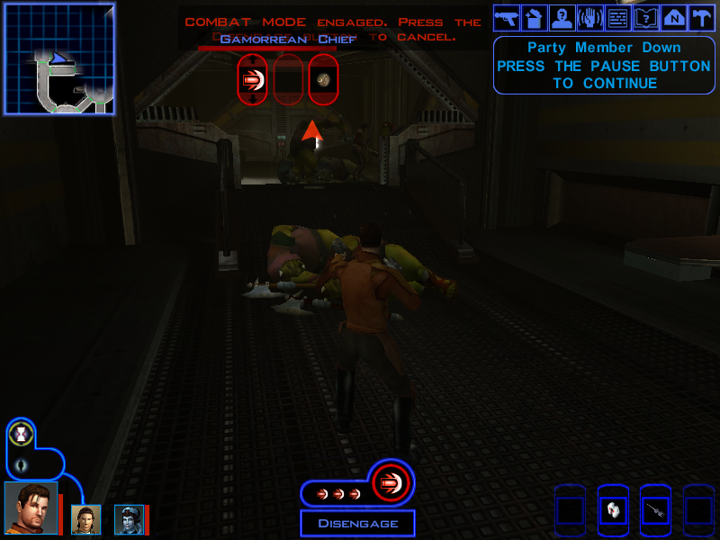 Using every single party member wisely (Putting Avren in front so that he aggroes everyone and Carth and Mission can just shoot them from afar) we're able to clear the room easily.