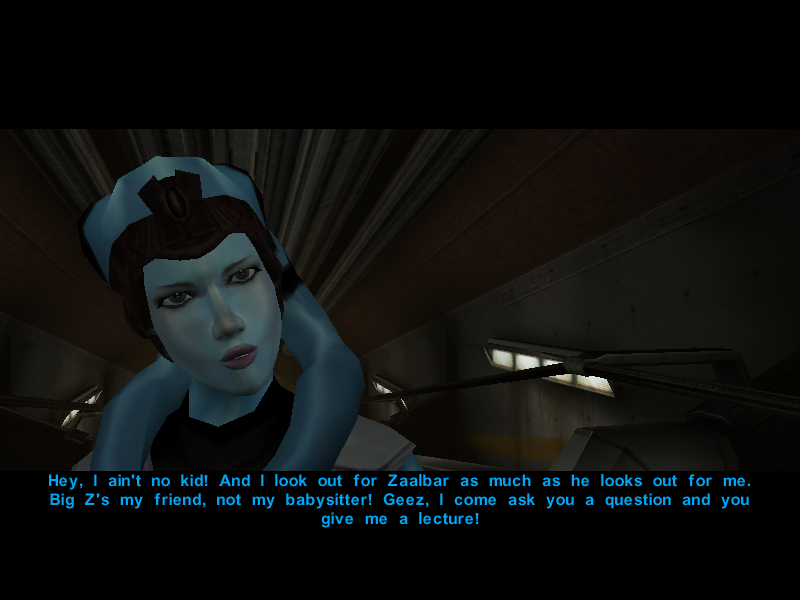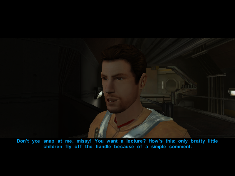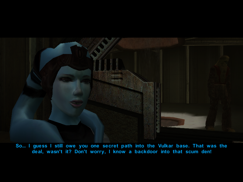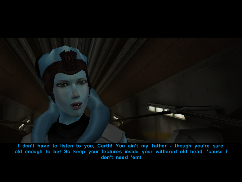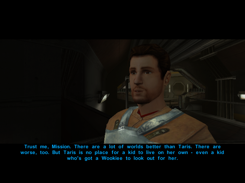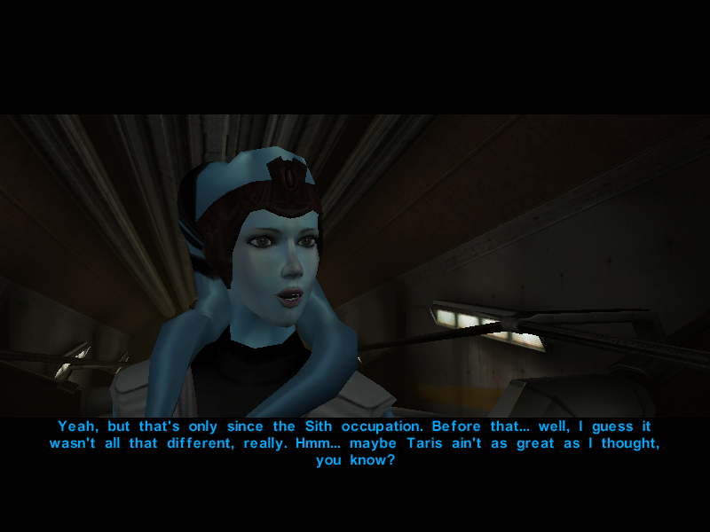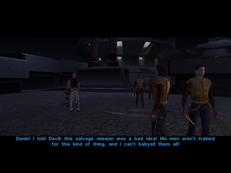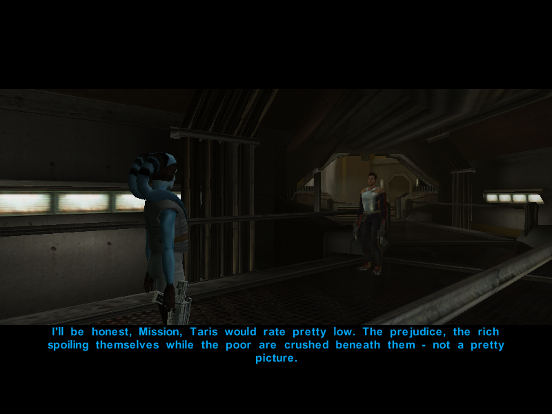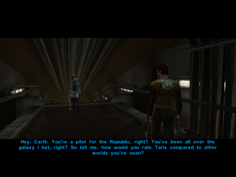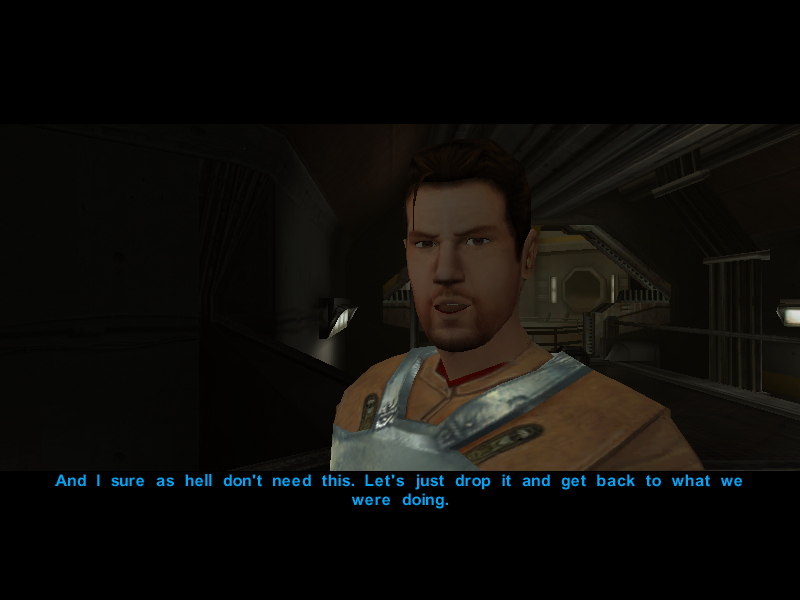 Since it's been proven that the Undercity isn't the best place to hold a conversation, Avren decides to cut the talk and say his goodbyes to Canderous and his men.