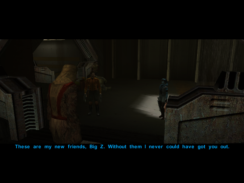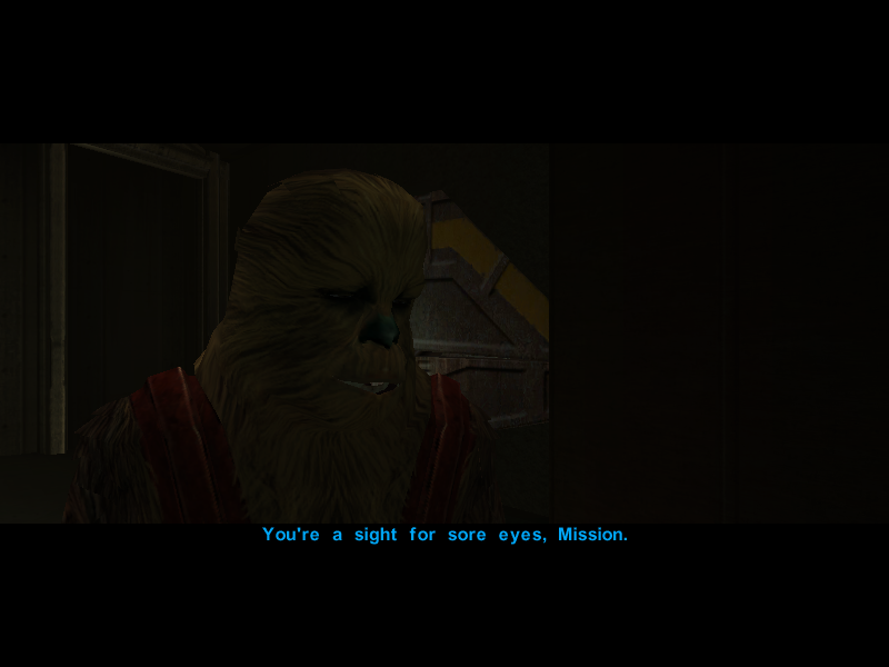 "I'm glad to see you too, Big Z! You didn't think I'd forget about you – Mission and Zaalbar, together forever!" Says Mission.