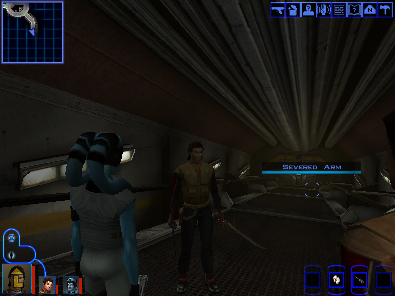 Carth and Mission then convince Avren to just grab the datapad that the arm seems to be holding despite being a limp, cold, severed arm.